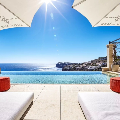 Facing south, with panoramic sea and mountain views, the house is surrounded by landscaped gardens of over 1,000 m2 with a superb swimming pool.