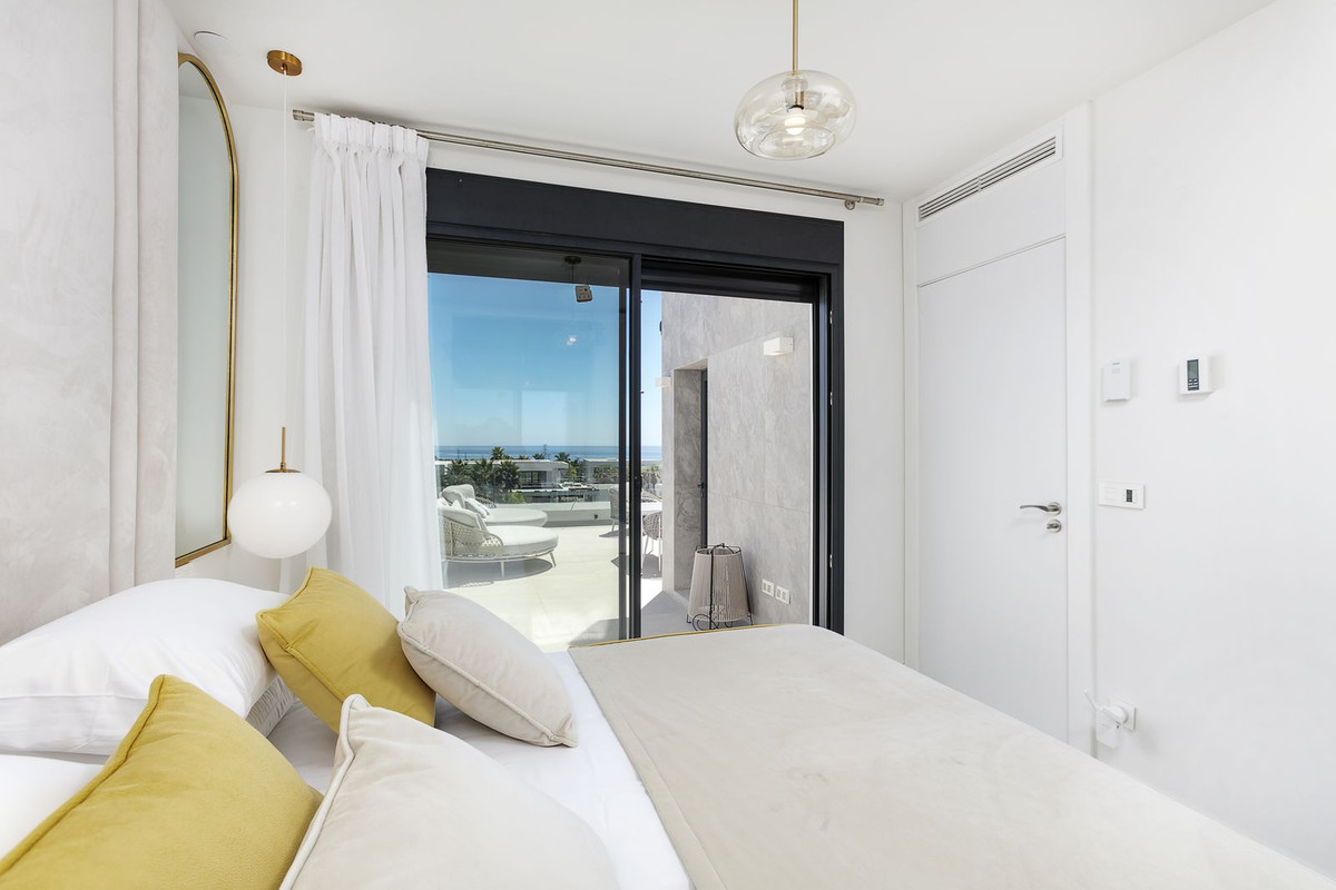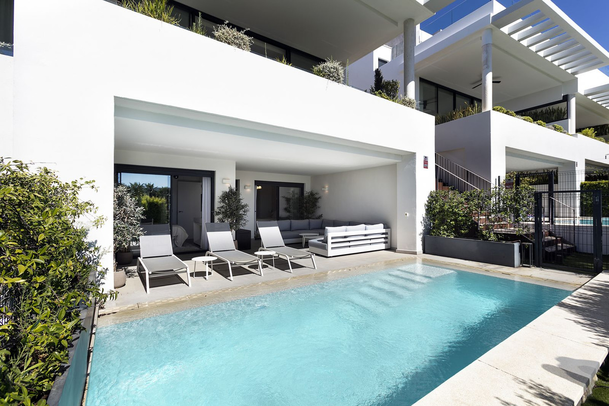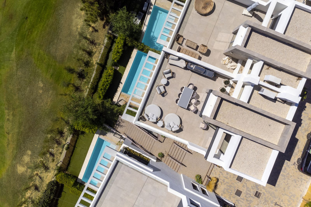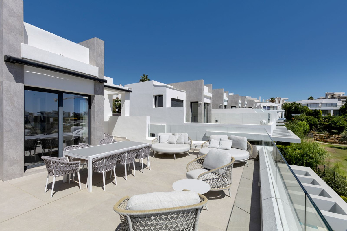 Stunning semi detatched townhouse frontline to Cabopino golf course located in a gated community just a 3 minute drive from Marbella's best sandy beach and a beautiful marina.