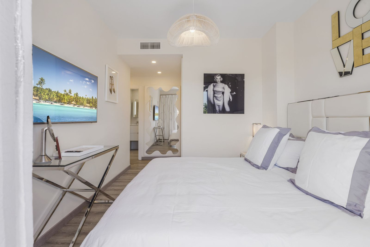 The family bathroom is fully reformed in a modern style with walk in shower, handy sensor lighting and LED mirror with bluetooth and speaker. The master bedroom has a spacious ensuite bathroom, modern and fully reformed with large walk in shower and sensor lighting. The master bedroom suite is a relaxing haven with a luxury feel, bright and airy with built in double wardrobes and patio doors to the outside terrace and a seperate seating area. The second bedroom is bright, charming and a lovely space. Also with built in double wardrobes and patio doors to access to the terrace. The terrace area has been refurbished in a modern style with different areas to rest and relax and designer outdoor furniture included.