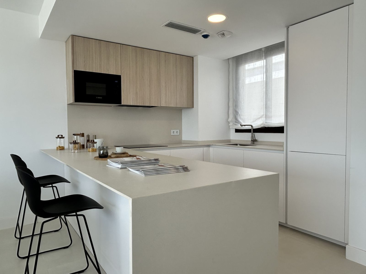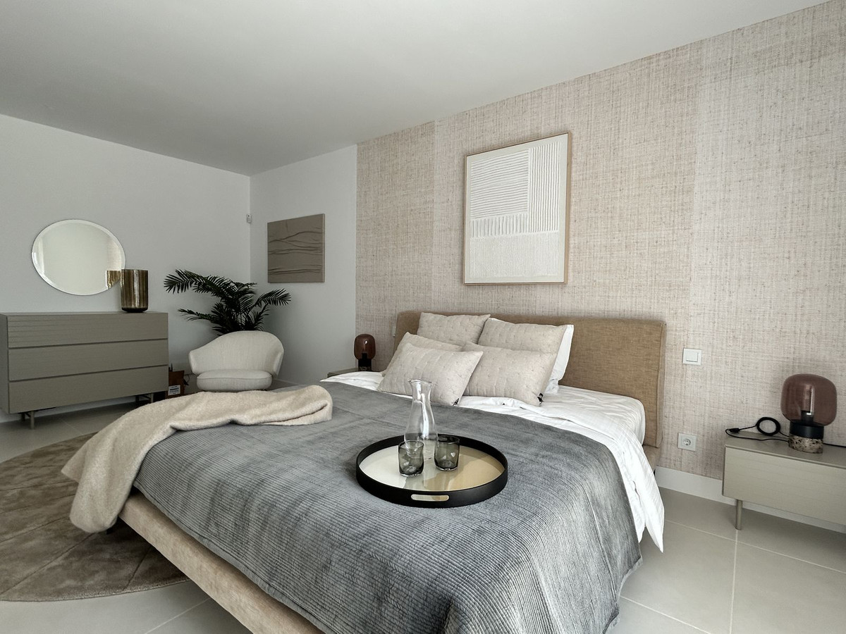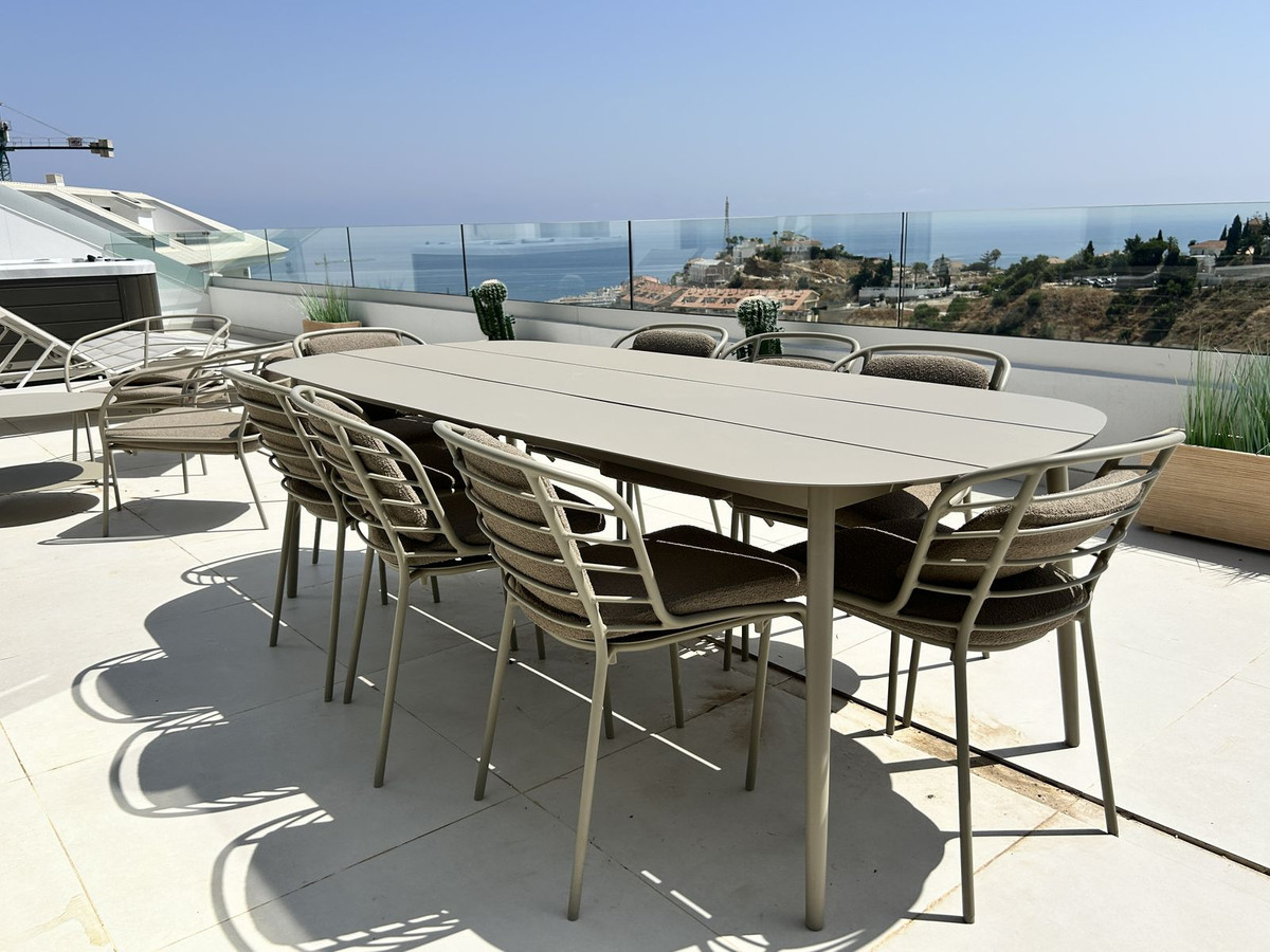 The property comes fully furnished with high-end designer pieces and a comprehensive interior design project by Ikonia Ilusion&Arte, combining selected furniture, lighting, and contemporary tones to maximize the feeling of spaciousness.