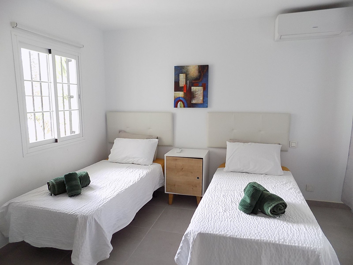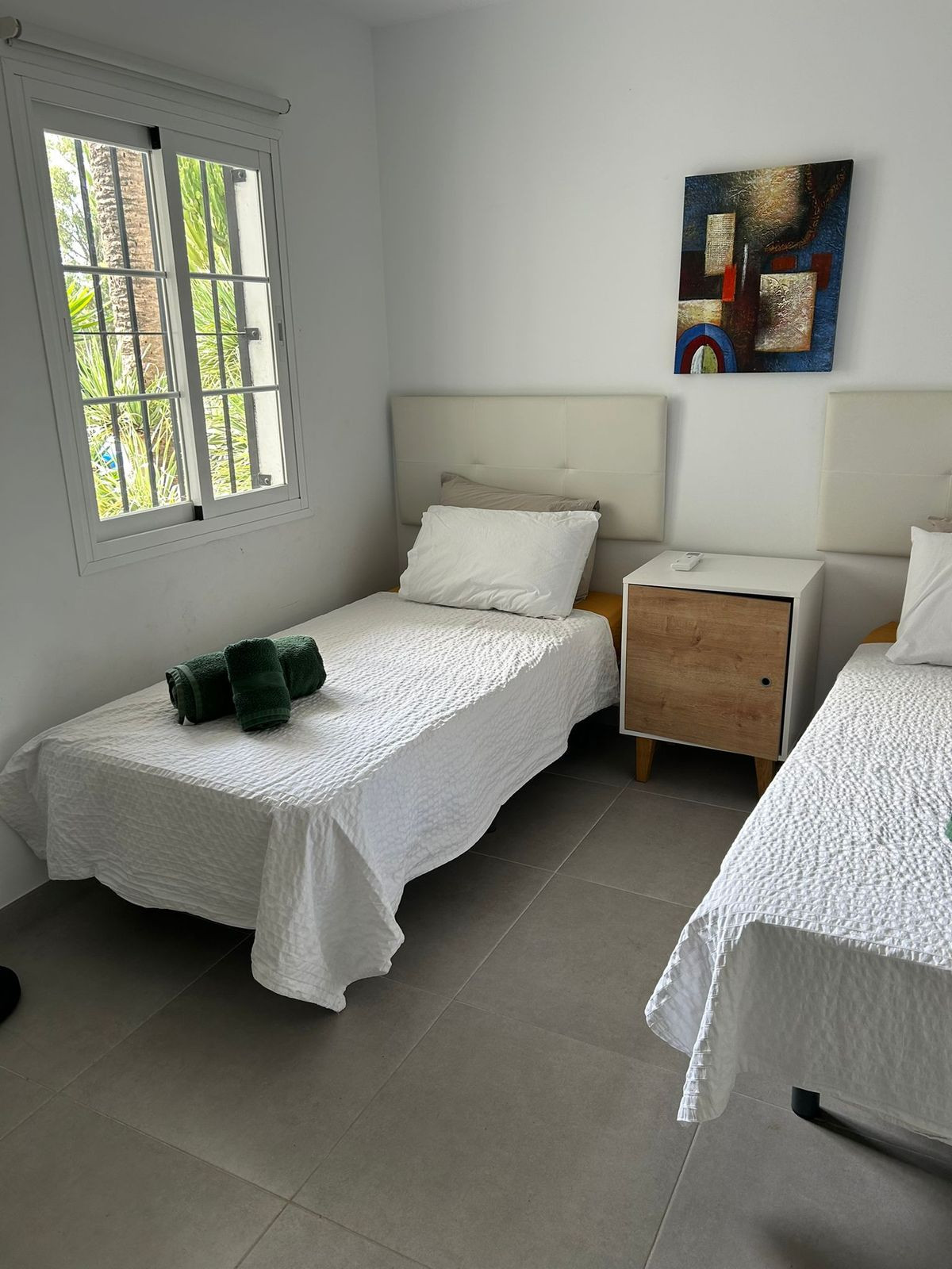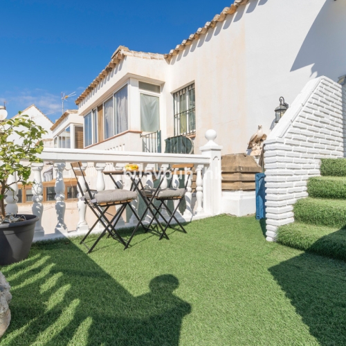This beautifully renovated and show quality townhouse with touristic licence is located in the prestigious Mijas Golf area within walking distance to all amenities and public transport. It is set in the tranquil gardens of a gated, secure community.There are two floors plus a large basement which has also been renovated to include a new bathroom, lounge and office (this could easily be a third bedroom if required). On the ground floor, there is a modern kitchen, hallway with guest toilet and a lounge/dining room area that exits onto the stunning community gardens. On the upper floor, there are two spacious double bedrooms and two modern bathrooms. The sale includes all furniture, fixtures and fittings. It is well located with easy access to shops, bars and restaurants. Just outside the urbanisation there is a bus stop that takes you to Fuengirola and Enterrios. There are two hotels close by; Hotel Tamisa and the luxury La Zambra Hotel. In addition,there are two 18 hole golf courses and a driving range next to the property that includes an excellent bar/restaurant which is open all day to the general public. The house is ideal for use as a holiday home (there is an existing touristic licence) or long/short term rental investment. 7 minutes to La Cala de Mijas. 5 minutes to Fuengirola. Viewings can be at short notice if required. Open to offers.