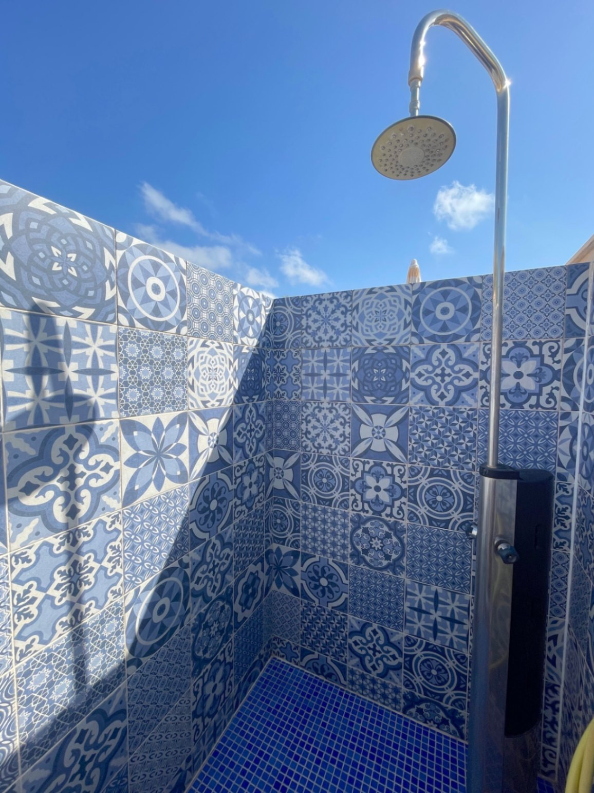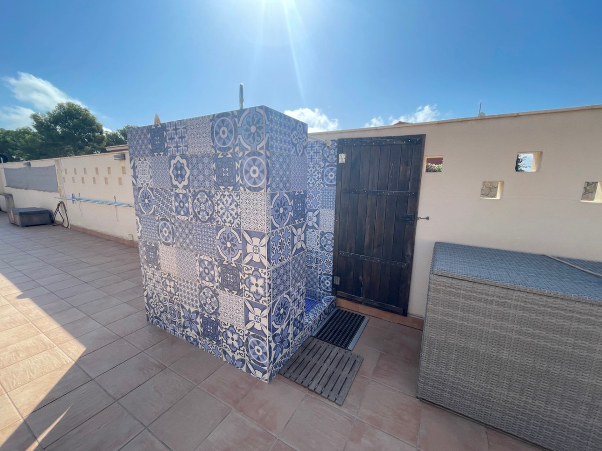 Rejuvenating Outdoor Oasis: Dive into your very own fantastic pool, complete with an outdoor shower – a true oasis for relaxation and fun during those sun-drenched days. The extensive paving and terraced areas surrounding the property make outdoor maintenance a breeze, providing ample space for sunbathing, alfresco dining, or simply soaking in the stunning surroundings.