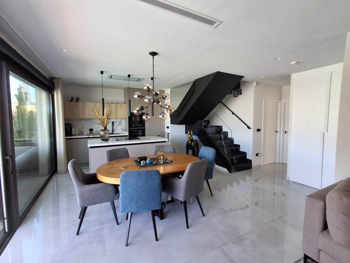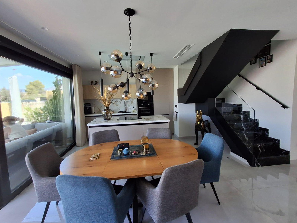 Where Elegance Meets Comfort ????We present to you a real estate gem: an independent, modern, and nearly new villa, designed with the highest quality materials and decorated with exquisite taste. A dream home where every corner is designed to surprise you.With 2 floors plus a solarium, this exclusive property features 3 spacious bedrooms and 3 designer Italian bathrooms, two of which have private terraces so you can wake up every day to open views of the sea and mountains. The bright living room and elegant kitchen, equipped with state-of-the-art appliances, integrate with the exterior, creating a perfect environment for living and enjoying.Outside, a spectacular garden filled with palm trees, flowers, and green areas surrounds a heated saltwater pool with a cover, ideal for enjoying all year round. The large terrace is perfect for gatherings, dinners under the stars, or simply relaxing in your own private paradise.✨ Premium Features that Make a Difference:- Mitsubishi Slim air conditioning- Solar panels with hybrid inverter- Water softener- Integrated alarm with indoor and outdoor cameras- Electric shutters- Dimmable interior and exterior lighting- 8 m² storage shed made of concrete and wood- Heated saltwater pool with cover- All furniture, curtains, washing machine, dryer, and part of the outdoor furniture includedLocated in Balcon de Finestrat, a step away from Puig Campana Golf, close to shopping centers, services, restaurants, and with quick access to the Alicante highway, this villa is more than a house… it's a lifestyle.A home where quality, design, and location come together to create an exceptional property.