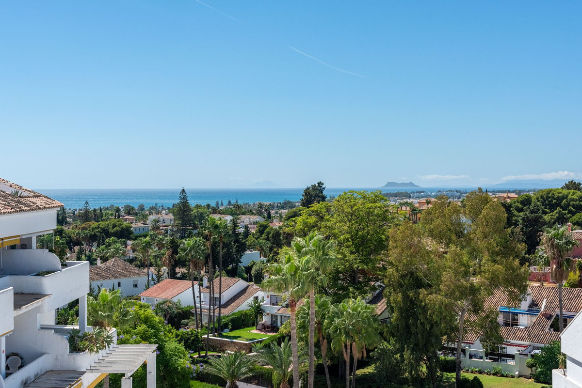 The spacious living room with dining area is bathed in natural light and opens onto a generous terrace where you can enjoy spectacular views of both the sea and the mountains. The kitchen is sleek and fully equipped, created for those who value style and functionality in perfect harmony. The property offers three bedrooms, one on the entrance level and two upstairs. The master bedroom features its own private bathroom and a stunning terrace with panoramic views over Nueva Andalucía and the Mediterranean – the ideal spot to enjoy the evening sun and let the day end with a breathtaking sunset.
