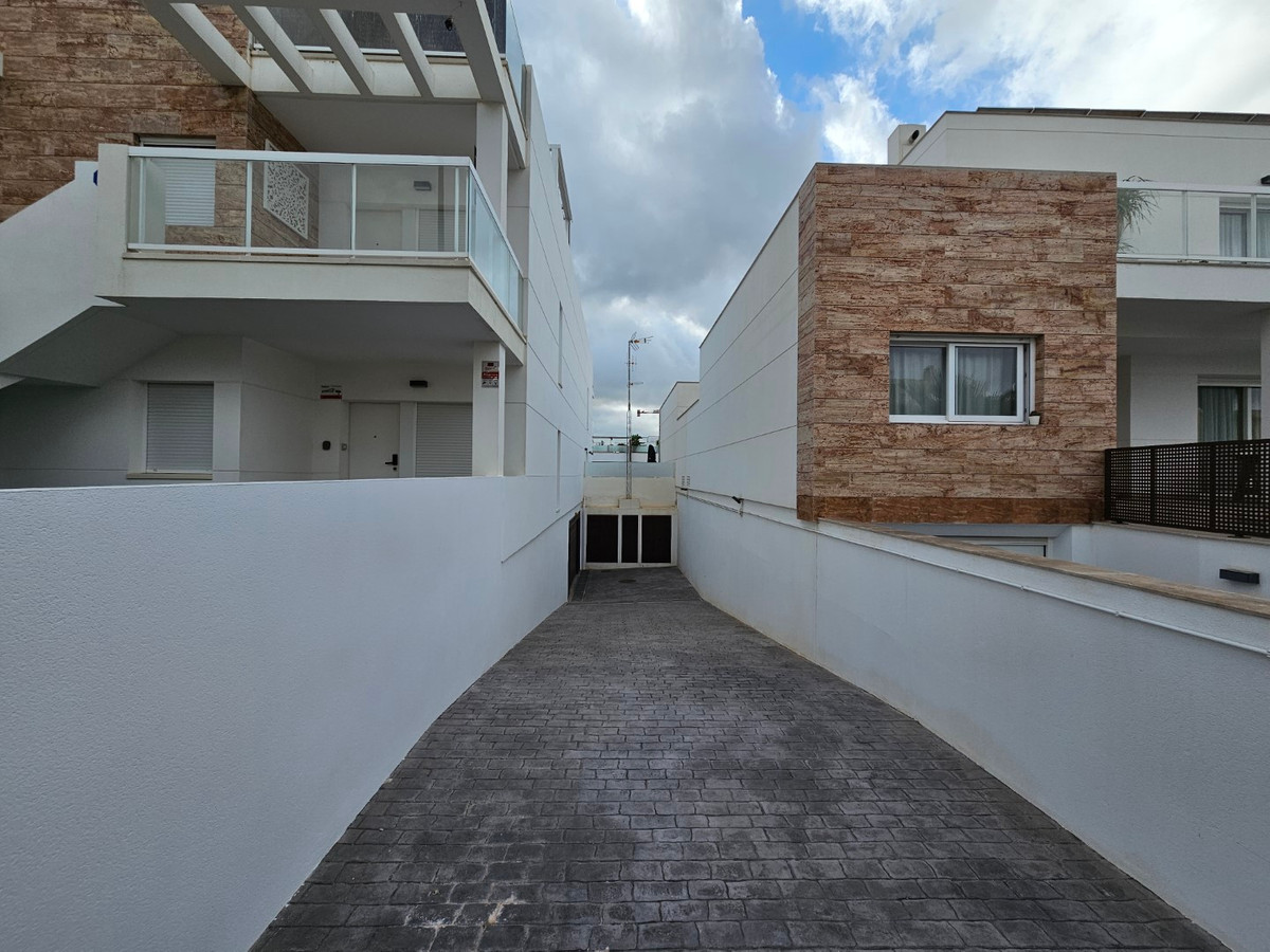 IMMACULATE 2 BED 2 BATH GROUND FLOOR BUNGALOWProud to present to you a truly immaculate ground floor bungalow located in San Pedro del Pinatar, Murcia. As the current owners travelled a lot it was barely used and therefor it looks as good as new. Sold with high quality furniture and top brand appliances.The front garden of 30M² features artificial grass, fruit trees, plants and automatic irrigation system. The 10M² terrace has been completely glazed in extending the living area creating a pleasant environment to enjoy outside dinner or morning coffee. The terrace also feature a sun awning.Inside the property you are welcomed in a cosy lounge/dining room with sliding doors that boast a lot of natural light. The U shaped kitchen is fully fitted and includes high end appliances and drinkwater filter system. From the kitchen you have access to the back patio which has been converted in a covered chill out zone. Here you can also find the laundry zone and aerotermic heater.The master bedroom includes a fitted wardrobe and en-suite bathroom and comprises an electric lifted bed with remote control and flat screen tv. The second bedroom is currently used as tv room and comes with a sofa-bed for visitors and build-in closet. From the hallway you have access to the second bathroom. Electric heating has been added to both bathrooms as well as an electric vaporizing system.The central airconditioning and electric blinds can be controlled with an app or remote controls to adapt the temperature to your personal likesUnderground carpark and storage unit are included in the price. The community pool is just around the corner.