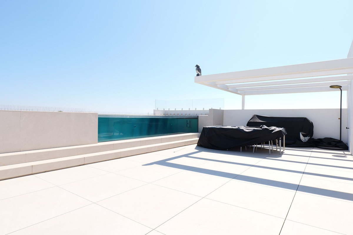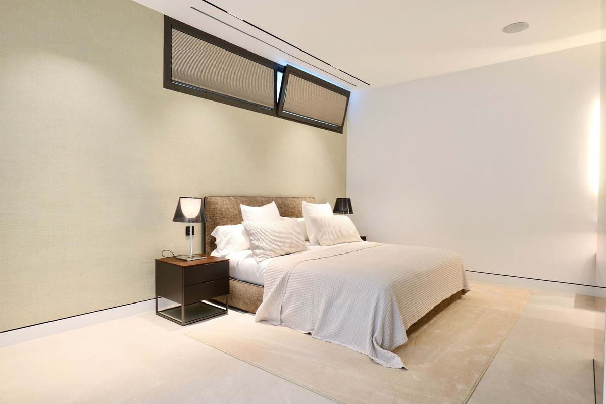 A highlight is the 100 m² rooftop solarium with pool, dining, and lounge areas, offering unbeatable Mediterranean vistas. Modern comforts include underfloor heating, smart home automation, Dolby Surround sound, and advanced security.