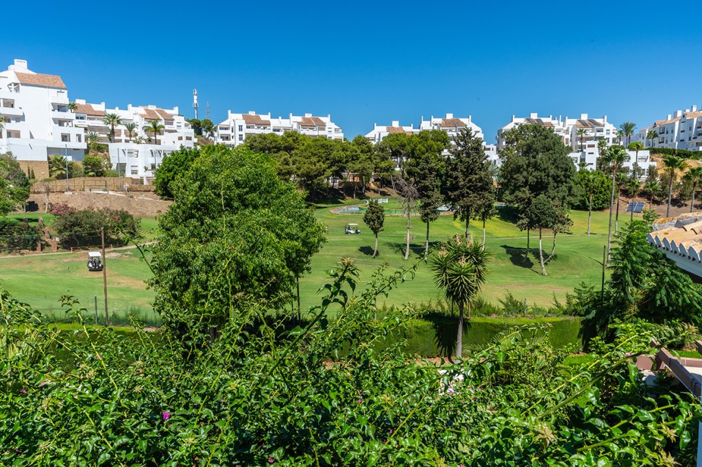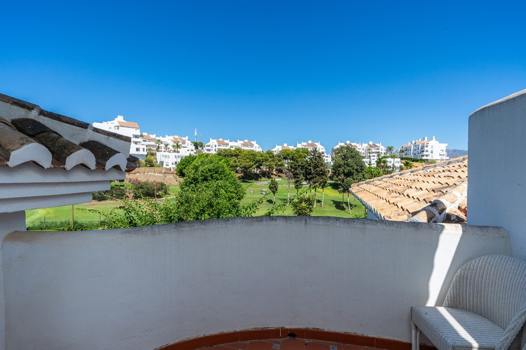Beautiful townhouse in a small complex in Riviera del Sol in Mijas-Costa frontline Golf. The house offers on the main level a fully equipped modern kitchen, a guest toilet, storage, one bedroom with en-suite bathroom and a large dining and living room with fireplace and with access to the private terrace with private garden. On the first floor there are two further bedrooms with en-suite bathrooms and a lovely summer terrace. There is also a roof terrace with sun all day. In the basement there is huge area that could be converted into a cinema, gym, more bedrooms, etc. In front of the house and in the complex there is a private parking space.