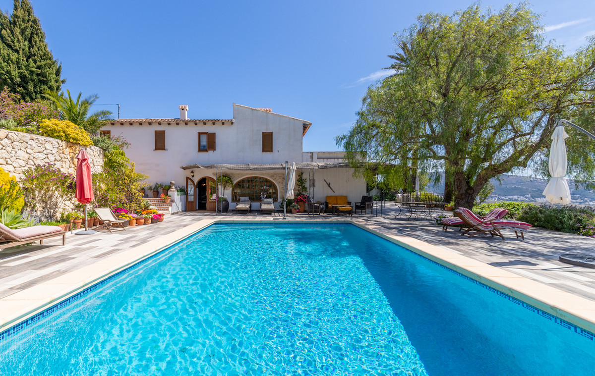 The views, like a postcard, are open towards the green fields of vineyards with the sea and the Cap d'or of Moraira in the background, built on the slope of a hill with southwest orientation, which guarantees us the enjoyment of the mild climate of the area, being protected from the north wind and with the south wind that is the natural air conditioning of the area in the summer season.
