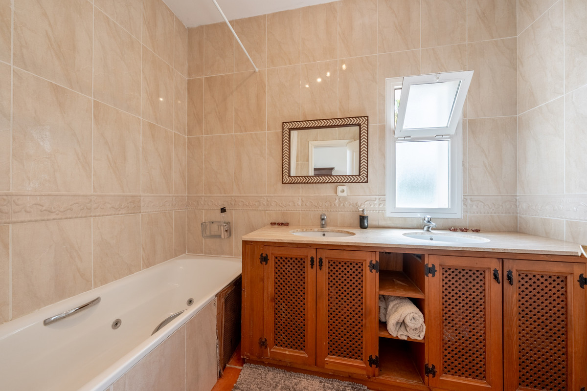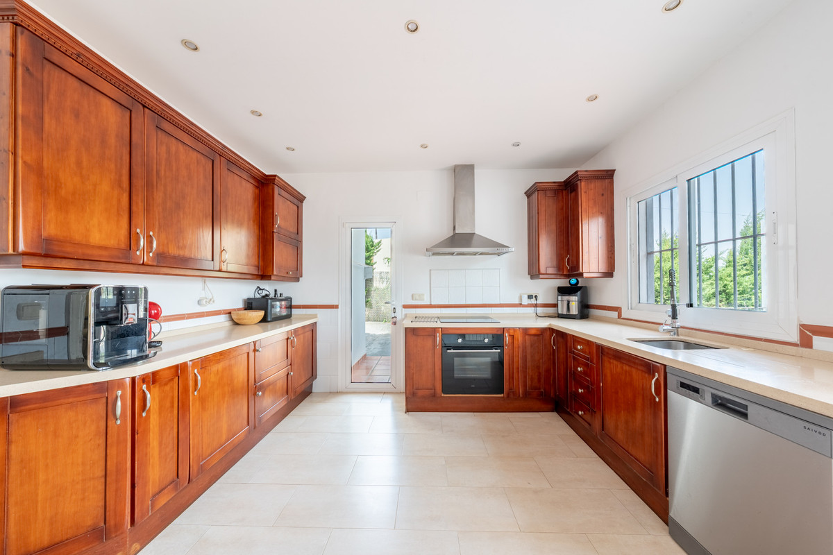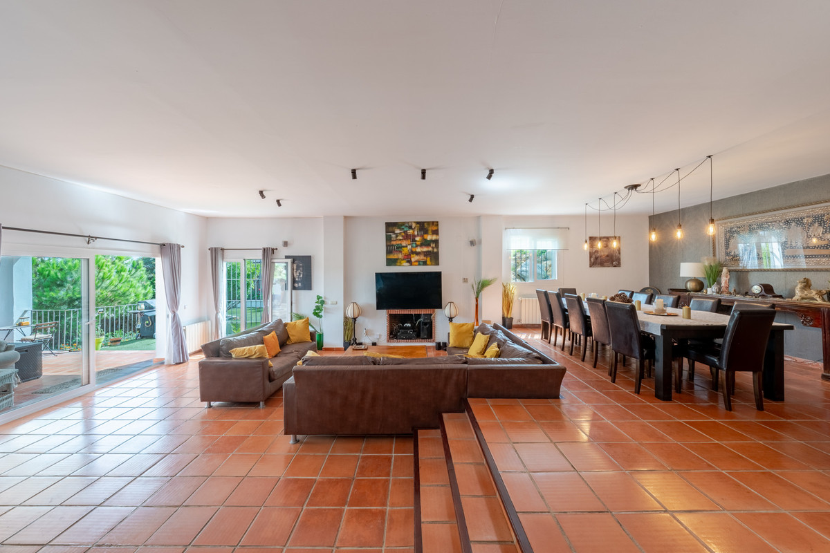 The villa features five spacious bedrooms and five bathrooms, including three en-suite, making it ideal for large families or guests. The entrance hall features a striking double-height ceiling, creating a bright and welcoming first impression. The living spaces are comfortable and practical, with a living room, dining area, and a fully fitted and equipped kitchen, plus a utility and laundry room and pantry. You'll also find a central heating and fireplace for cosy evenings, gres flooring, and individual air conditioning units throughout.