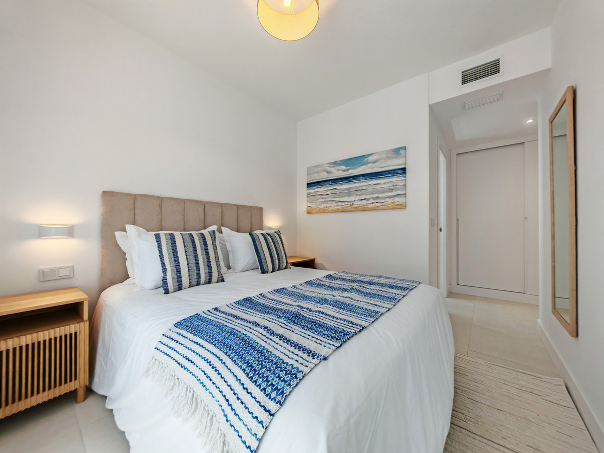 Apartment for sale in , Fuengirola with 3 bedrooms, 2 bathrooms, 1 on suite bathroom, 1 toilet and with orientation south, with communal swimming pool and private garage (1 parking spaces). Regarding property dimensions, it has 118.95 m² built, 93.1 m² interior and 25.85 m² terrace. Has the following facilities air conditioning, fully fitted kitchen, jacuzzi, sauna, guest room, storage room, gym, security entrance, brand new, private terrace, living room, sea view, mountain view, indoor pool, heated pool, automatic irrigation system, security shutters, laundry room, internet - wi-fi, covered terrace, 24h service, electric blinds, fitted wardrobes, gated community, lift, pool view, panoramic view, tennis / paddle court, underfloor heating (bathrooms), close to children playground, close to golf, uncovered terrace, glass doors, balcony, optional furniture, spa, wheelchair-accessible, ceiling heating system, close to shops, close to schools and pets allowed.
