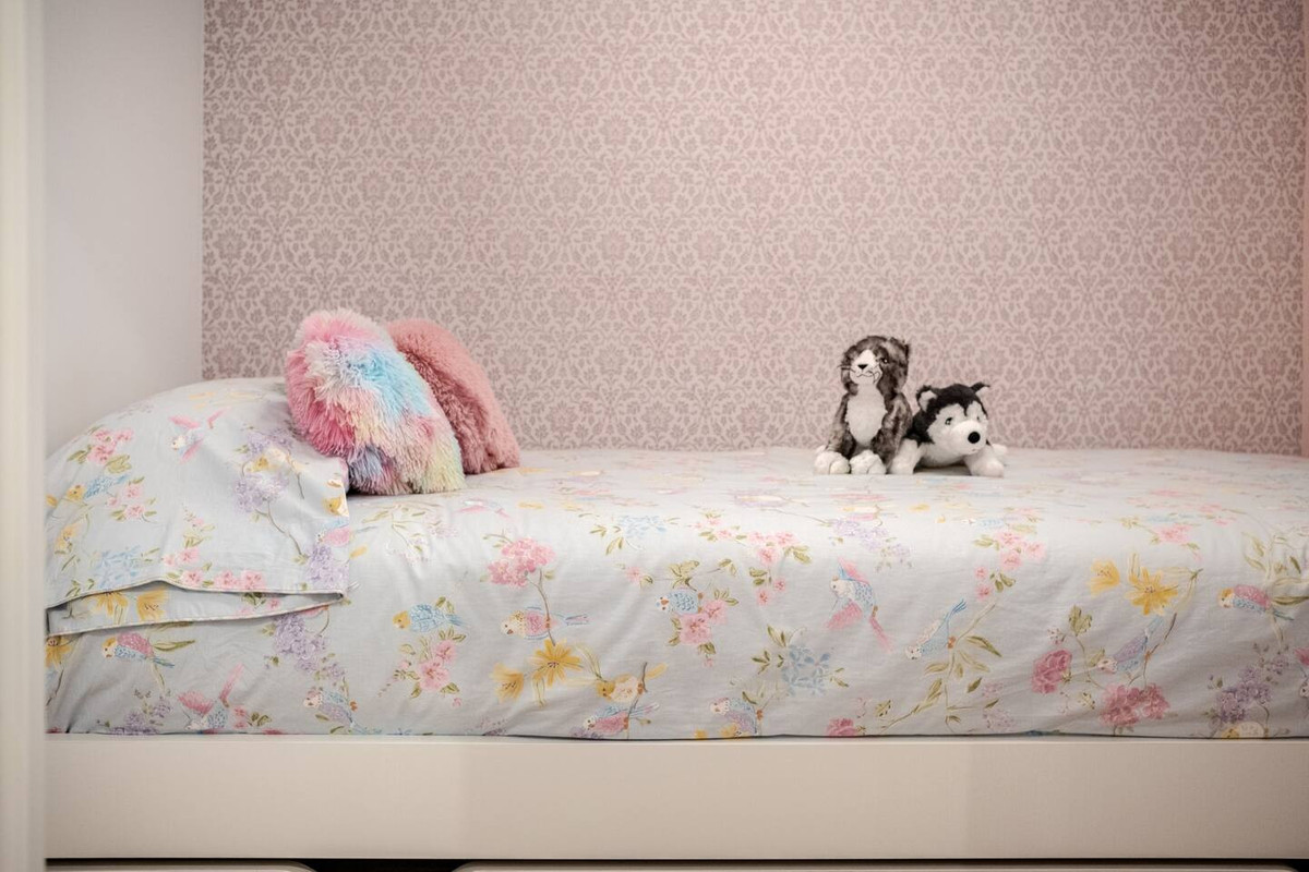 The apartment includes a fully equipped kitchen, two well-distributed bedrooms, and a complete bathroom with a spacious shower. The living room opens directly onto a large terrace surrounded by lush gardens, a perfect space to enjoy outdoor dining, relax in the sun, or share moments in a peaceful setting.