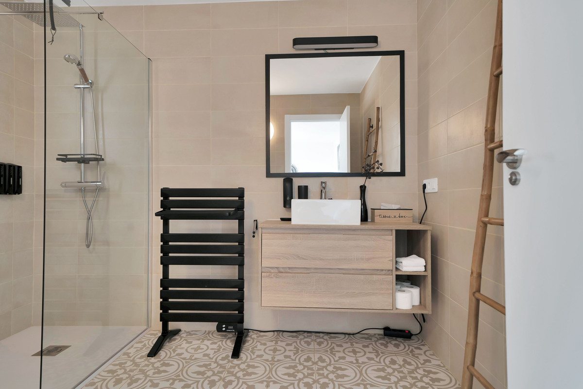 The lower floor offers 4 bedrooms, each with its own en-suite bathroom, ensuring privacy and comfort. It also includes a living room and a modern kitchen, making it ideal for gatherings or as additional space for family or guests.