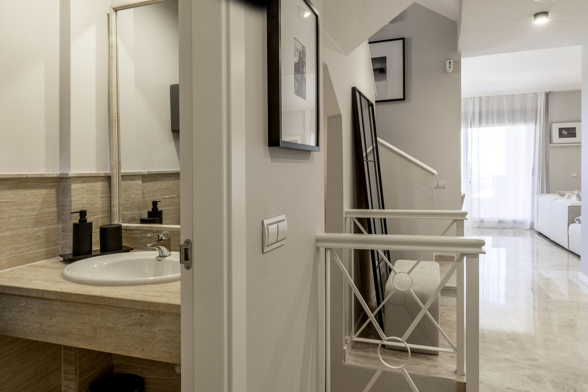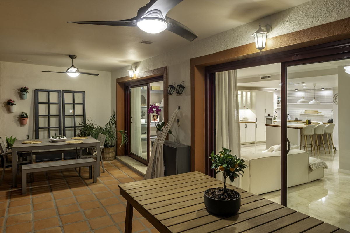 Perched in El Paraíso Alto, this corner townhouse of 225 m², southeast‑facing, is a poem of panorama: every room opens onto the Mediterranean and the iconic silhouette of La Concha. Set within a gated, monitored community where three pools nestle among pine and greenery, the property strikes a rare balance of security, privacy and breathtaking views.