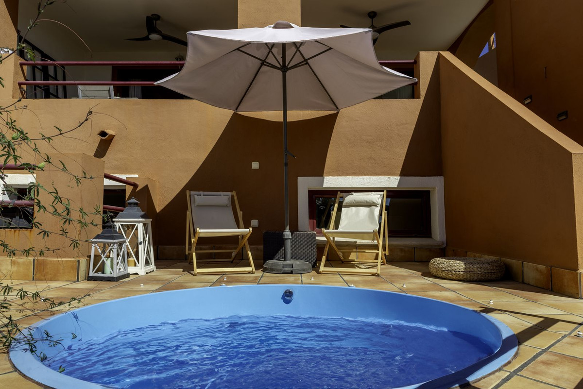 - Garden with BBQ area, chill‑out corner, outdoor shower and six‑person jacuzzi
