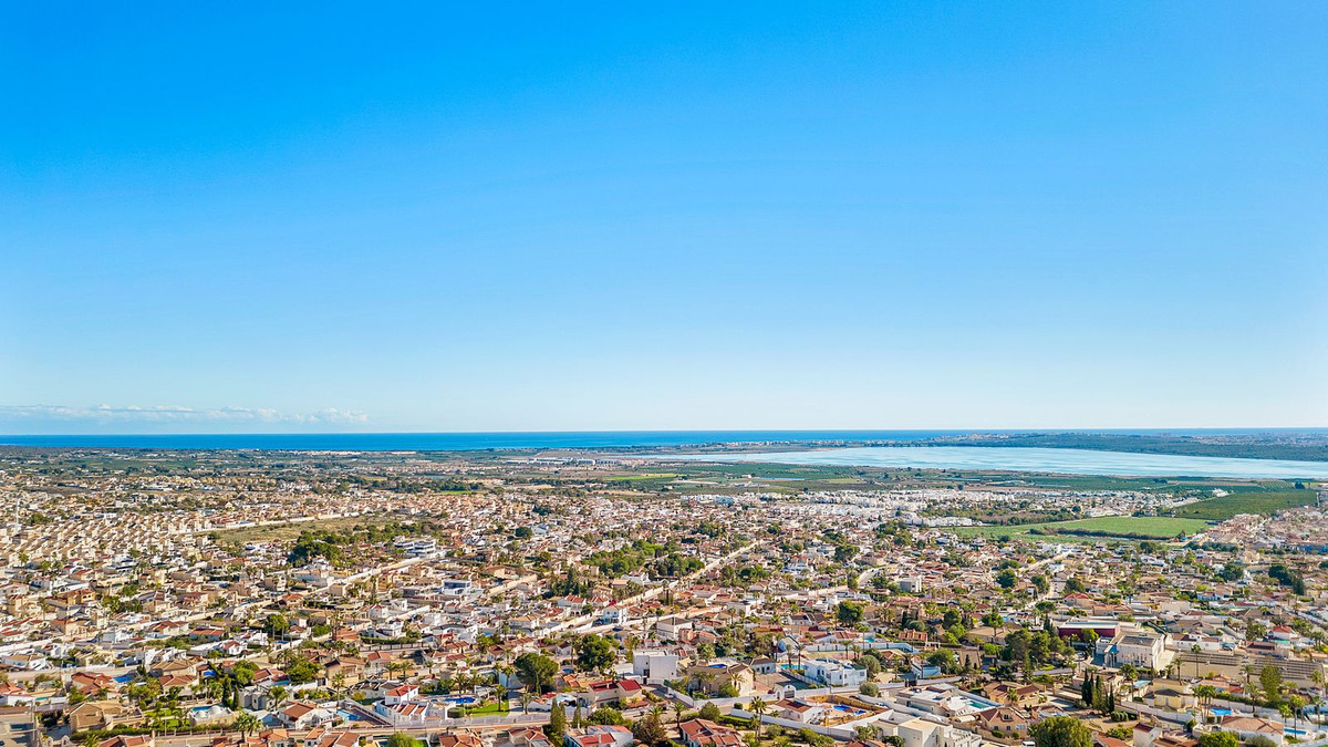 Welcome to what might just be Ciudad Quesada's most breathtaking view. This elegant and spacious south east -facing villa offers panoramic vistas stretching from the glittering Mediterranean Sea to the famous Pink Salt Lakes and the lush greenery of La Mata Lagoon. Set on a generous 925 square meter plot, this beautifully designed home combines comfort, and space — with multiple terraces, a private guest apartment, and a large swimming pool to truly enjoy the outdoor lifestyle Spain is known for.