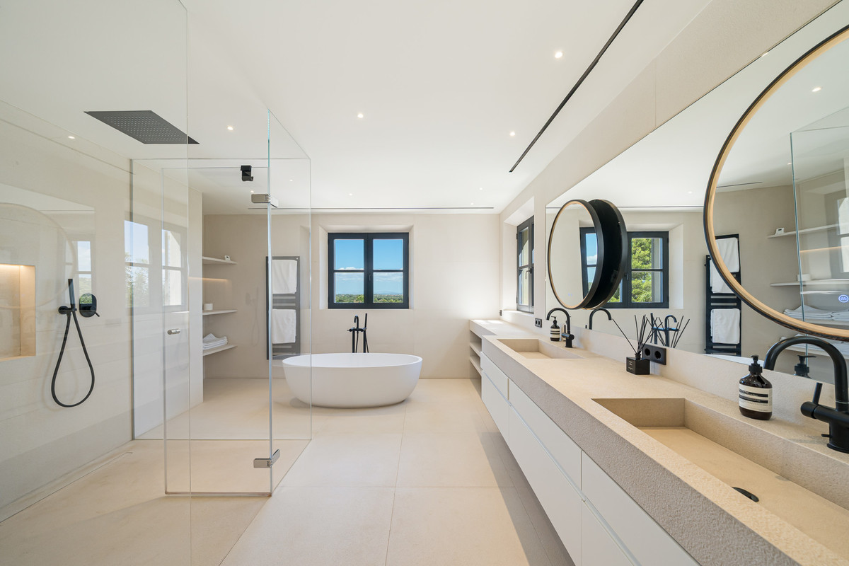Finca Santa Maria is a brand-new luxury villa for sale in Santa Maria del Camí, one of Mallorca's most desirable residential locations. This exceptional property combines sophisticated design with a privileged setting in the heart of the island. Spanning 670 m² across three levels, the home offers 580 m² of beautifully crafted interiors, complemented by expansive terraces with southwest-facing views over the sea and all the way down to Palma.