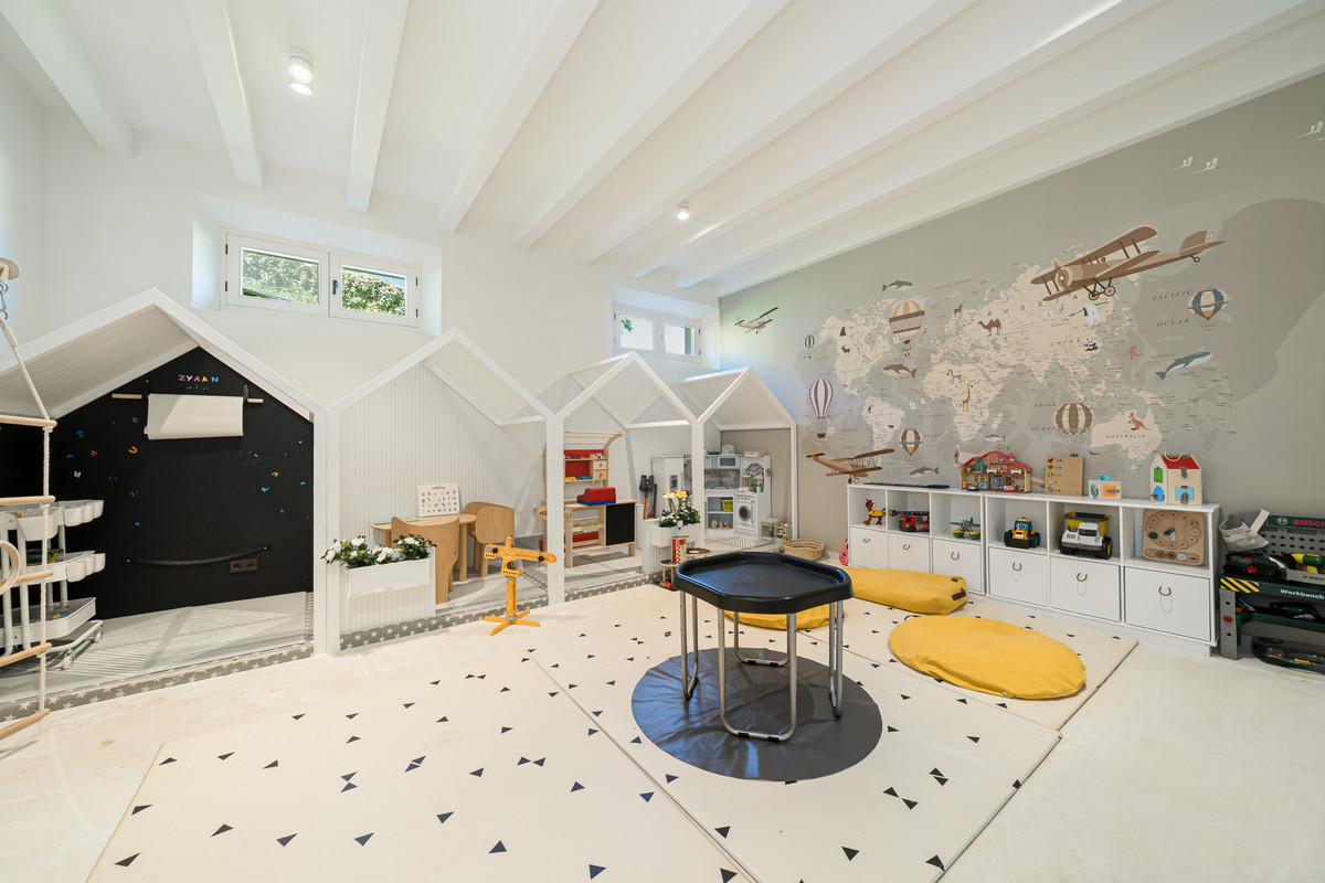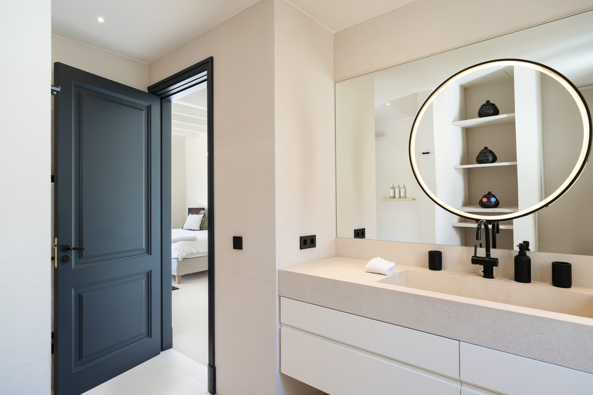 The villa's design reflects a seamless fusion of contemporary architecture and refined interior aesthetics. Floor-to-ceiling windows draw in natural light, accentuating the generous proportions of each space while framing the island's stunning landscapes. With five spacious bedrooms, each featuring its own en-suite bathroom, residents are assured of comfort and privacy. The total of seven bathrooms, plus two additional guest toilets, ensures functionality for family and visitors alike. Delivered fully furnished with bespoke, high-end pieces, the interiors are both elegant and practical, creating a home ready for immediate enjoyment.