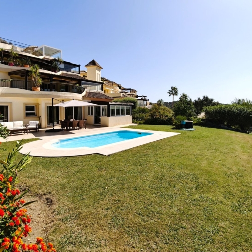 Spacious and bright ground-floor apartment with a private garden, located in the prestigious San Roque Club. This property offers 3 large en-suite bedrooms, a guest toilet, and generously sized living spaces, ideal as both a permanent residence or a holiday home.