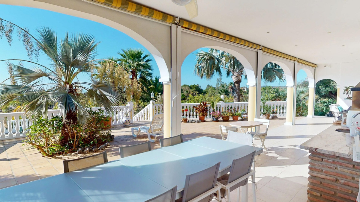 This charming villa in Vélez-Málaga combines comfort, spaciousness and a design that integrates tradition and modernity. The property has three bedrooms and two bathrooms, and an open-plan design that seamlessly connects the living room, dining room and kitchen, creating a bright and welcoming atmosphere. The living room has a cozy fireplace with a wooden mantel, perfect for cooler nights, and large windows that flood the house with natural light and offer views of the surroundings. The modern kitchen is equipped with stylish cabinets, granite countertops and stainless steel appliances, including gas hob and extractor hood. The villa has an office space and a decoration that combines contemporary and traditional elements, with artistic details that add colour and personality to the rooms. Outside, the property stands out for its large plot full of various fruit trees, including exotic fruits, as well as a small greenhouse and a storage room. The house has a carport, private pool with underwater speakers and counter-current swimming system, chill out area and on the terrace a barbecue area, perfect for enjoying outdoor meals while contemplating spectacular views of the sea and the mountains. This villa represents a unique opportunity for those looking for a home with charm, comfort and ample amenities in the beautiful region of Malaga.   We are delighted to be able to present this property to you soon, either personally or via virtual viewing. Because this world is unique - like our Axarquía. In Andalusia. On the Costa del Sol. Here, on the sunny side of life...