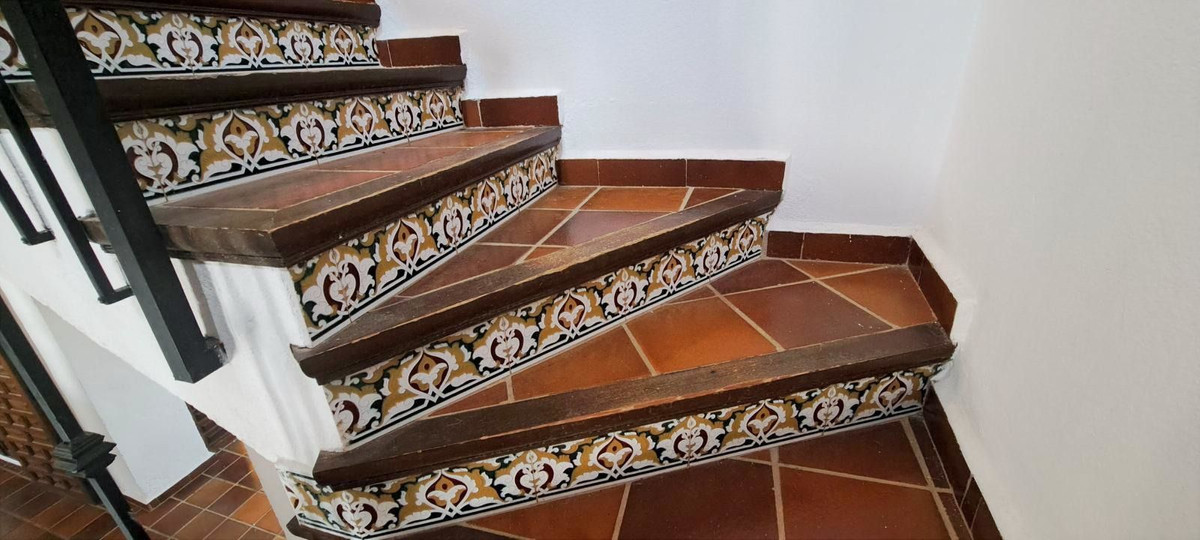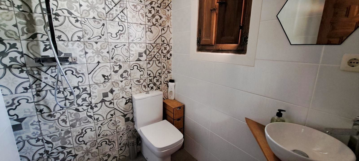 The living room, measuring approximately 45m², is spacious, bright and features many beautiful details. The windows and double doors offer stunning views of the valley below, and there is a spacious outdoor terrace where you can enjoy the Spanish countryside. The living room also has wooden ceiling beams, beautiful flooring and a large fireplace. For convenience, a pellet stove has been installed for the cooler winter months.