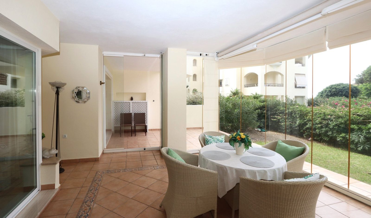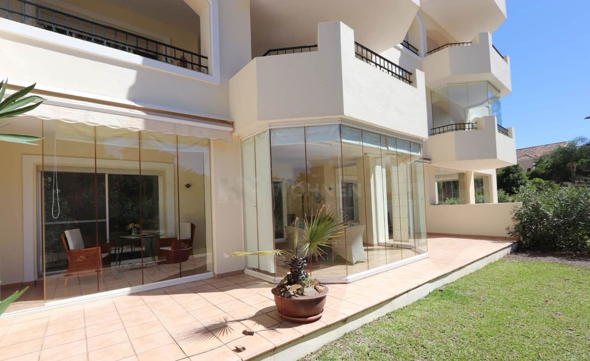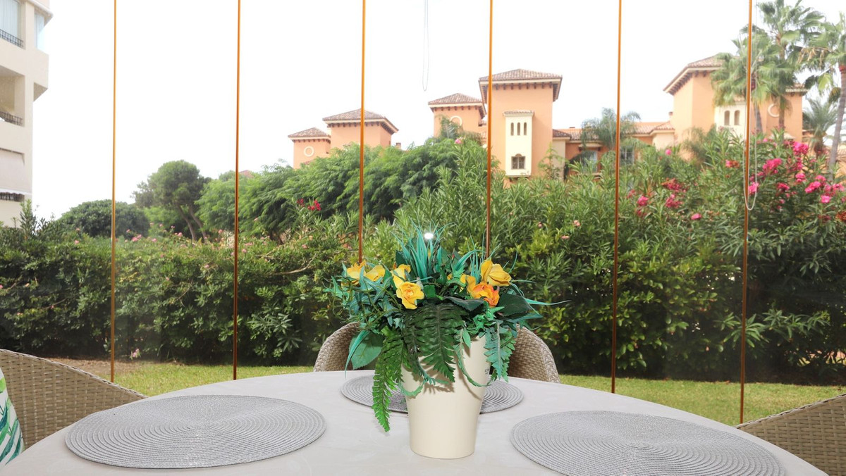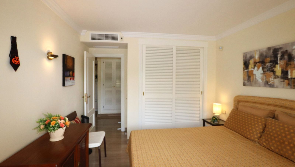Excellent opportunity! Luxury apartment in one of the most sought after residential complexes in Elviria Hacienda Playa. The property is located walking distance to the beach (50 meters) and just a few steps from all services such as restaurants, banks, churches, schools, etc. This south facing apartment with a living area of 106 m2 + 62 m2 terrace consists of 2 bedrooms, 2 bathrooms, fully furnished and equipped kitchen, a large living room and a very sunny terrace. Air conditioning, hot / cold, Well maintained complex with communal gardens and pool. All this surrounded by beautiful tropical gardens. The apartment is in excellent condition and is very well maintained. An ideal option to enjoy life in Marbella right by the sea. The apartment includes an underground parking space and a basement room. 2 bedrooms, 2 bathrooms, living area 106 m2 + 62 m2 terrace, south facing. Built in 2002. This is the perfect home for a permanent holiday stay. Its position and features make it very attractive on the rental market.