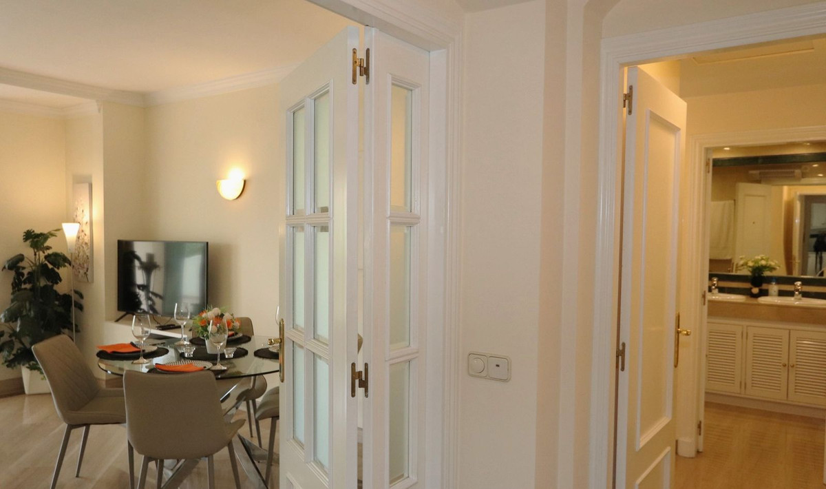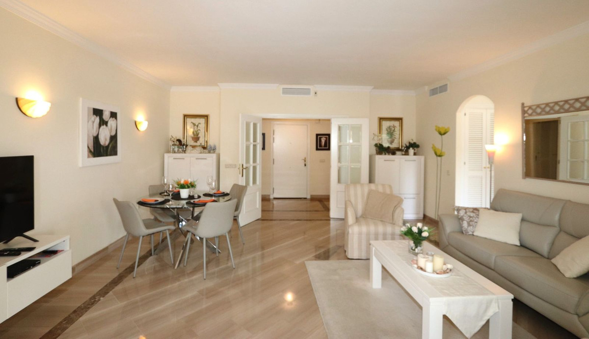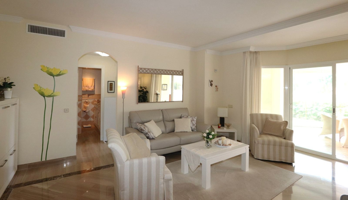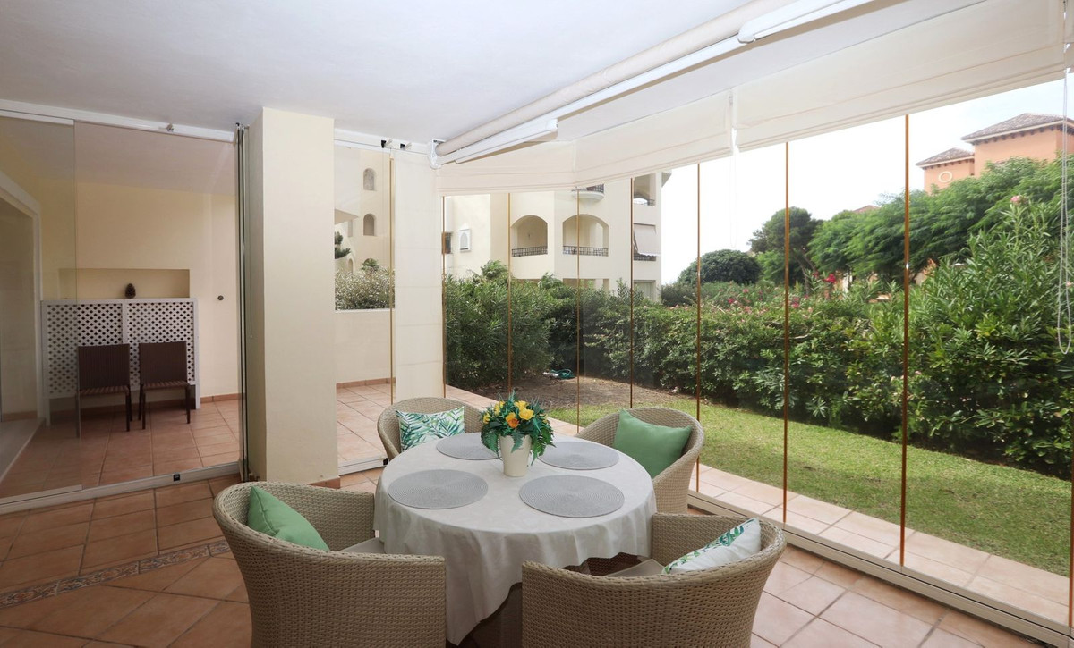 Excellent opportunity! Luxury apartment in one of the most sought after residential complexes in Elviria Hacienda Playa. The property is located walking distance to the beach (50 meters) and just a few steps from all services such as restaurants, banks, churches, schools, etc. This south facing apartment with a living area of 106 m2 + 62 m2 terrace consists of 2 bedrooms, 2 bathrooms, fully furnished and equipped kitchen, a large living room and a very sunny terrace. Air conditioning, hot / cold, Well maintained complex with communal gardens and pool. All this surrounded by beautiful tropical gardens. The apartment is in excellent condition and is very well maintained. An ideal option to enjoy life in Marbella right by the sea. The apartment includes an underground parking space and a basement room. 2 bedrooms, 2 bathrooms, living area 106 m2 + 62 m2 terrace, south facing. Built in 2002. This is the perfect home for a permanent holiday stay. Its position and features make it very attractive on the rental market.