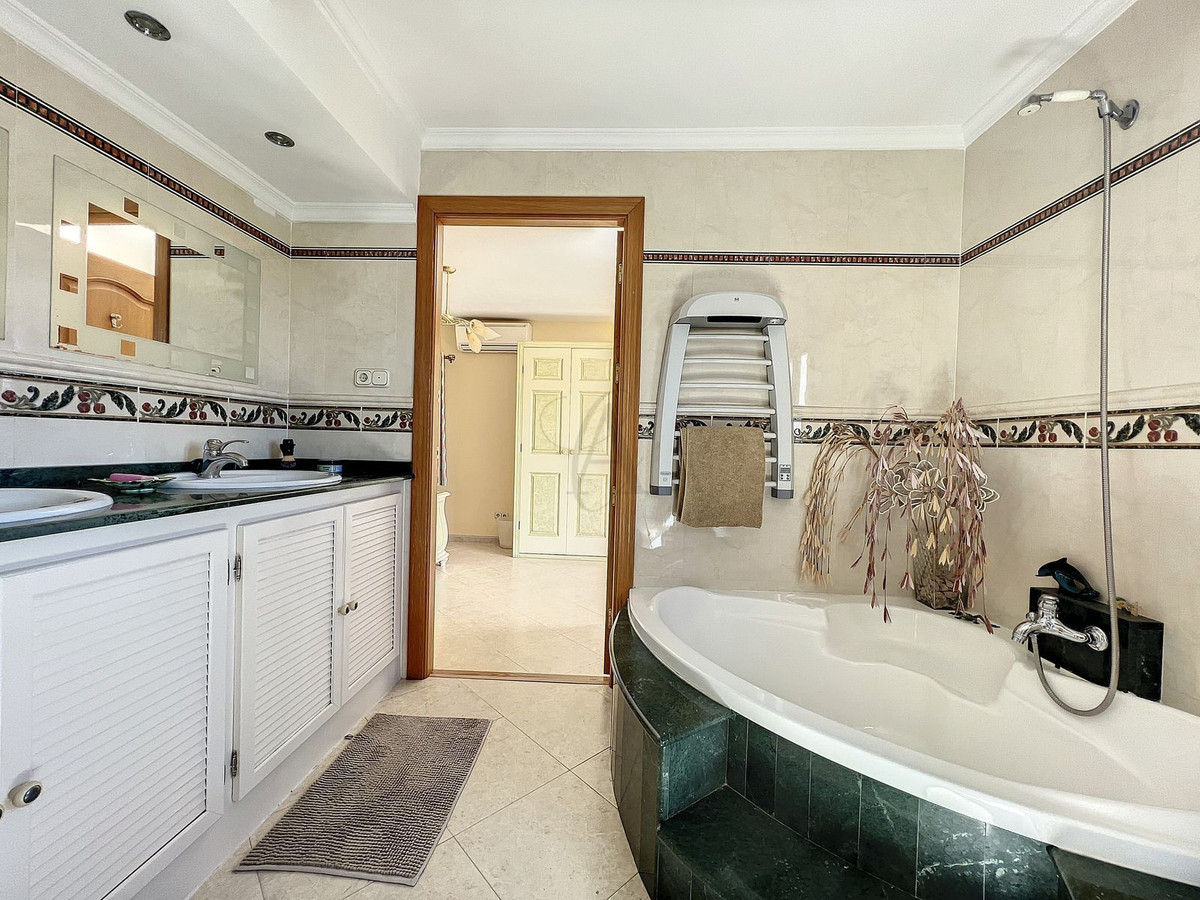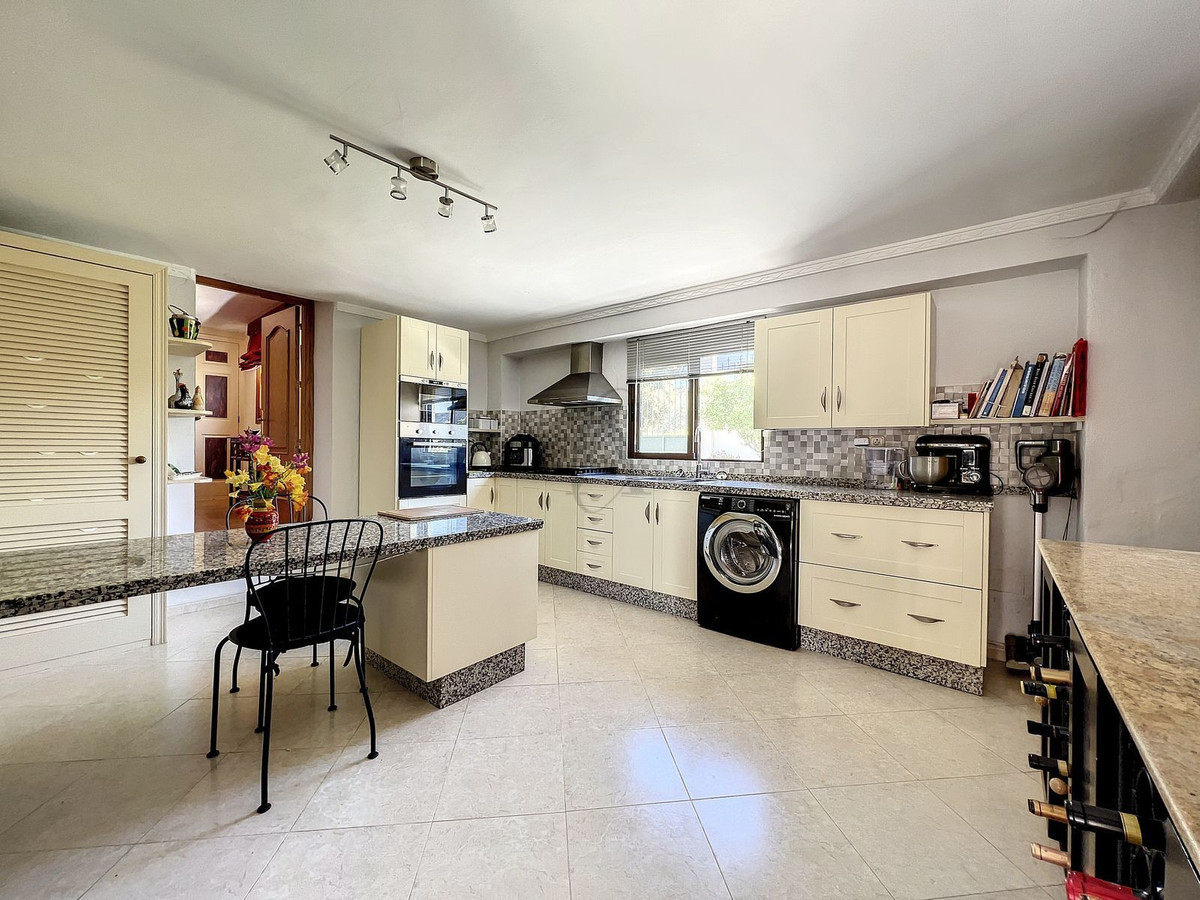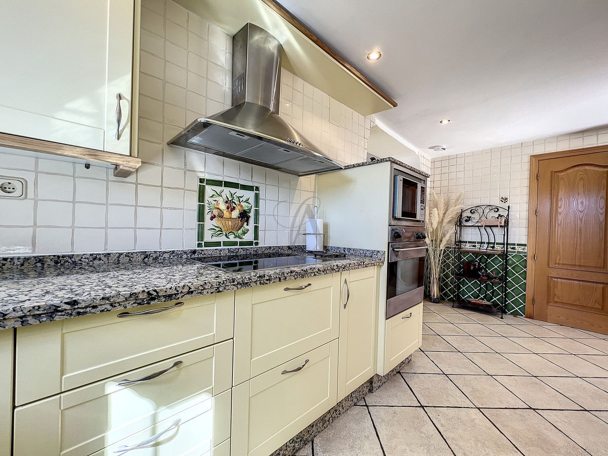 As soon as you enter you will see the beautifully tiled 13M x 6M large pool with a waterfall designed by the owner himself. A pool with magnificent views!
