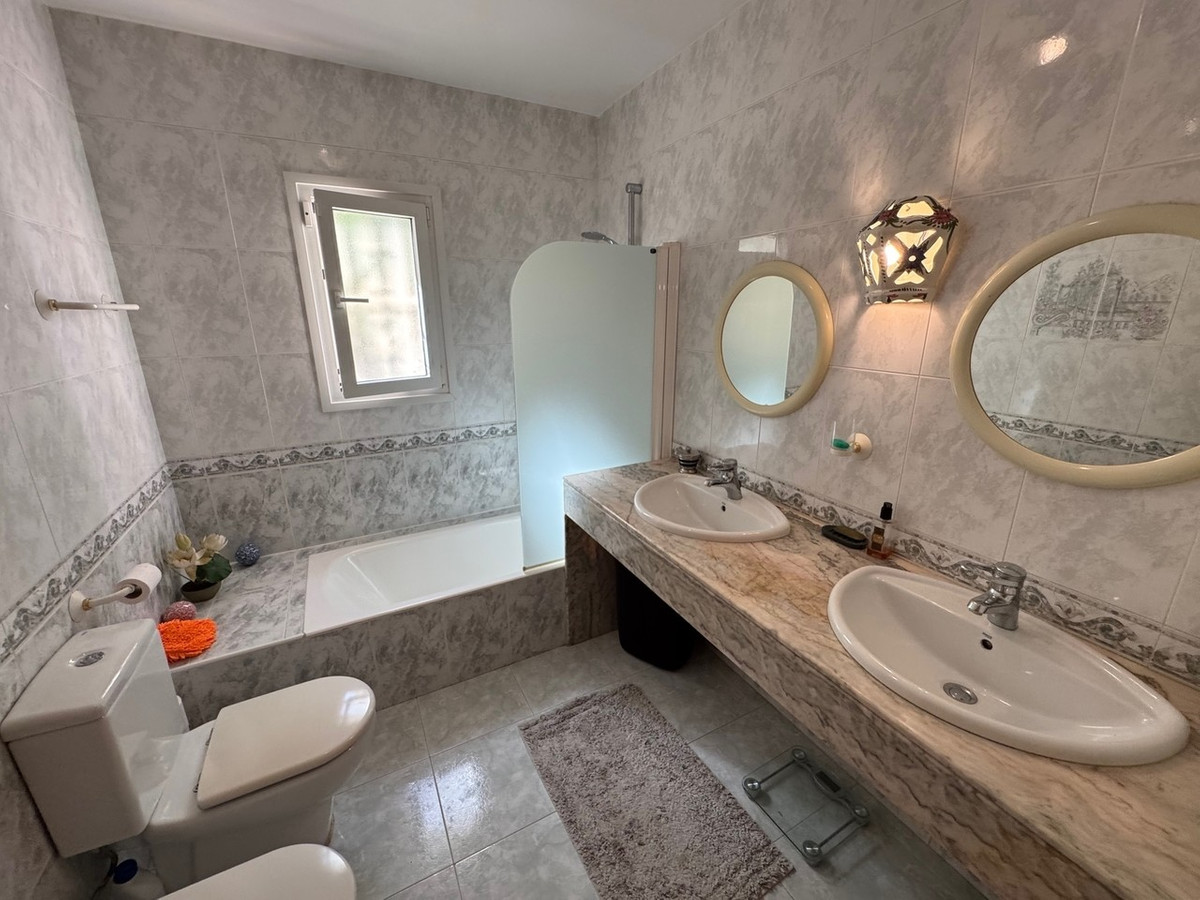 Approaching the villa, you will find off-road parking for two vehicles as well as a full size garage. The surrounding grounds are easy to maintain, featuring allocated garden areas with mature trees.