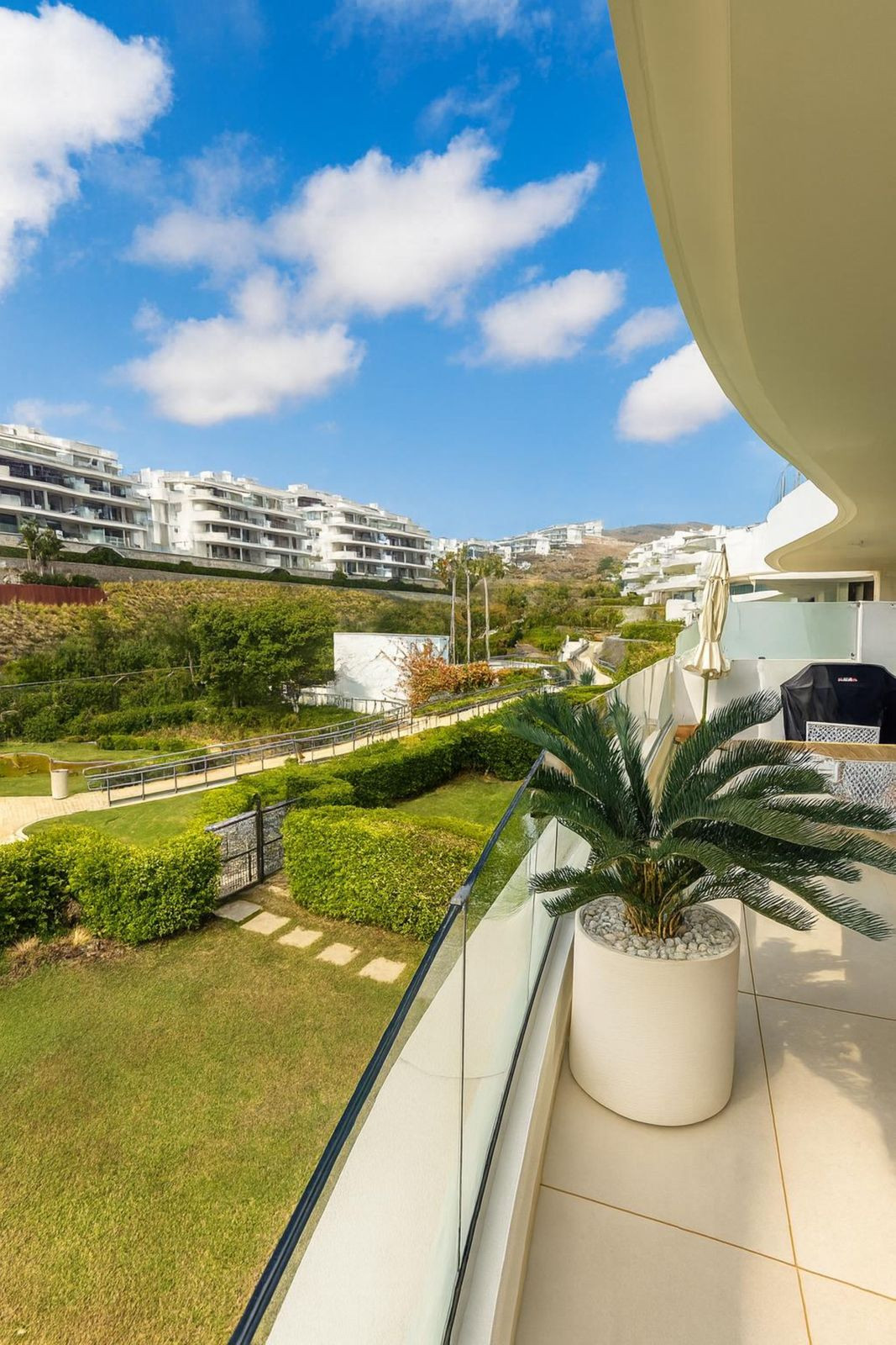 This elegant middle-floor apartment is located in the prestigious Higuerón West I community, offering the perfect combination of contemporary design, natural light, and resort-style living. With 119.65 m² of interior space, an amazing private terrace with views over the landscaped communal garden of 39.64 m² as well as a smaller terrace with access from the master bedroom of approx. 3 m², the home invites you to enjoy both indoor comfort and outdoor living.