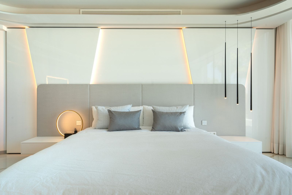 Located in this exclusive neighborhood, the villa enjoys a privileged beachfront location, offering privacy and breathtaking panoramic views of the Mediterranean Sea.