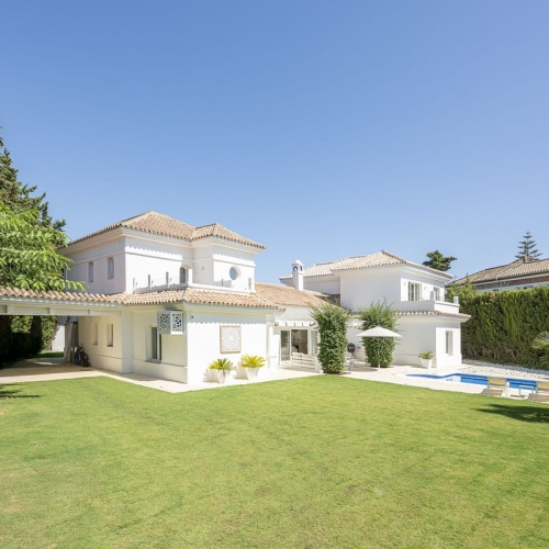 One of the very few frontline beach properties in Sotogrande, located in the prestigious gated "Bungalows" community, next to the Real Club de Golf de Sotogrande and just meters from the beach.