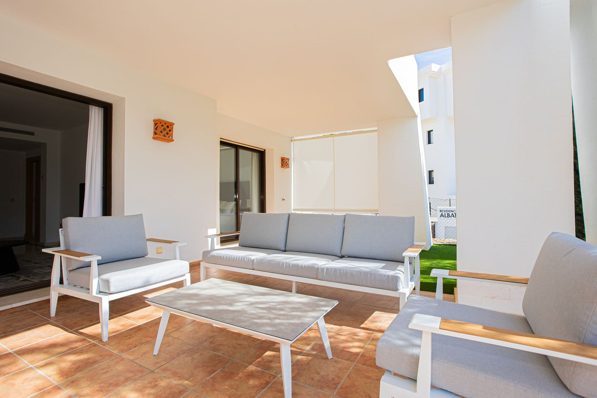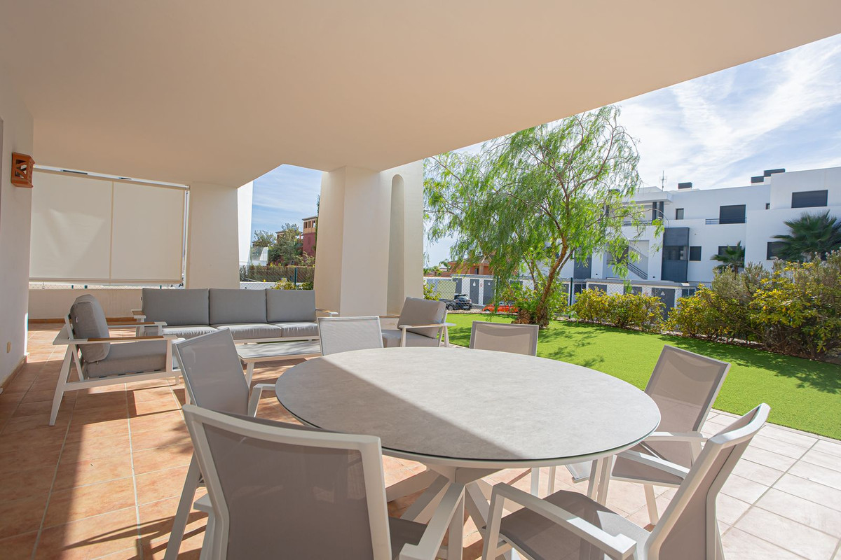 Quality ground floor 3 bedroom, 3 bathroom apartment with large outdoor covered terrace and garden - with Astro-Turf for easy maintenance.