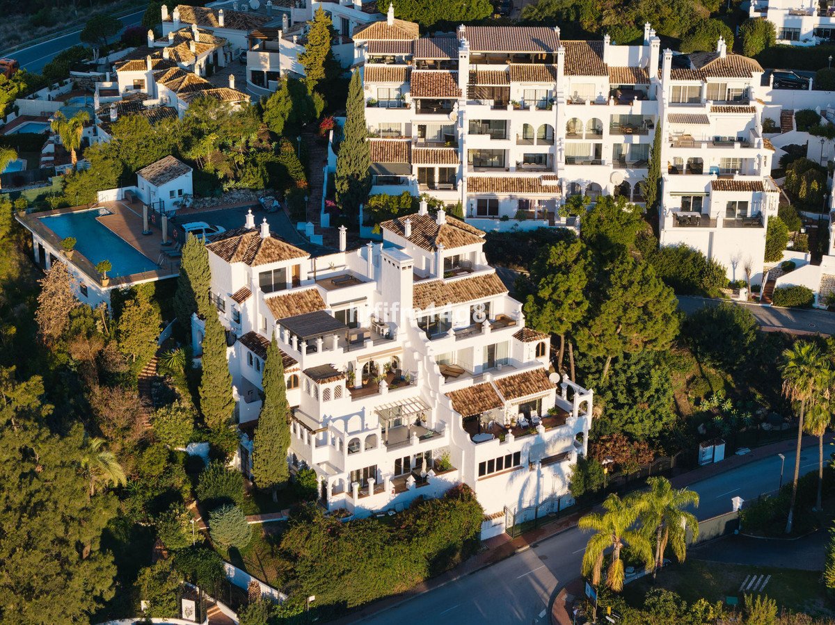Discover a stunning apartment with the charm and feel of a townhouse in the exclusive Las Colinas de Marbella. This exceptional property, with a total of 241m² (152m² interior plus 89m² of terraces), combines space, natural light, and panoramic views, offering a lifestyle defined by elegance and comfort. From its terraces, you can enjoy sweeping vistas of the Mediterranean Sea, the famous La Concha mountain, and even the distant silhouette of Gibraltar.