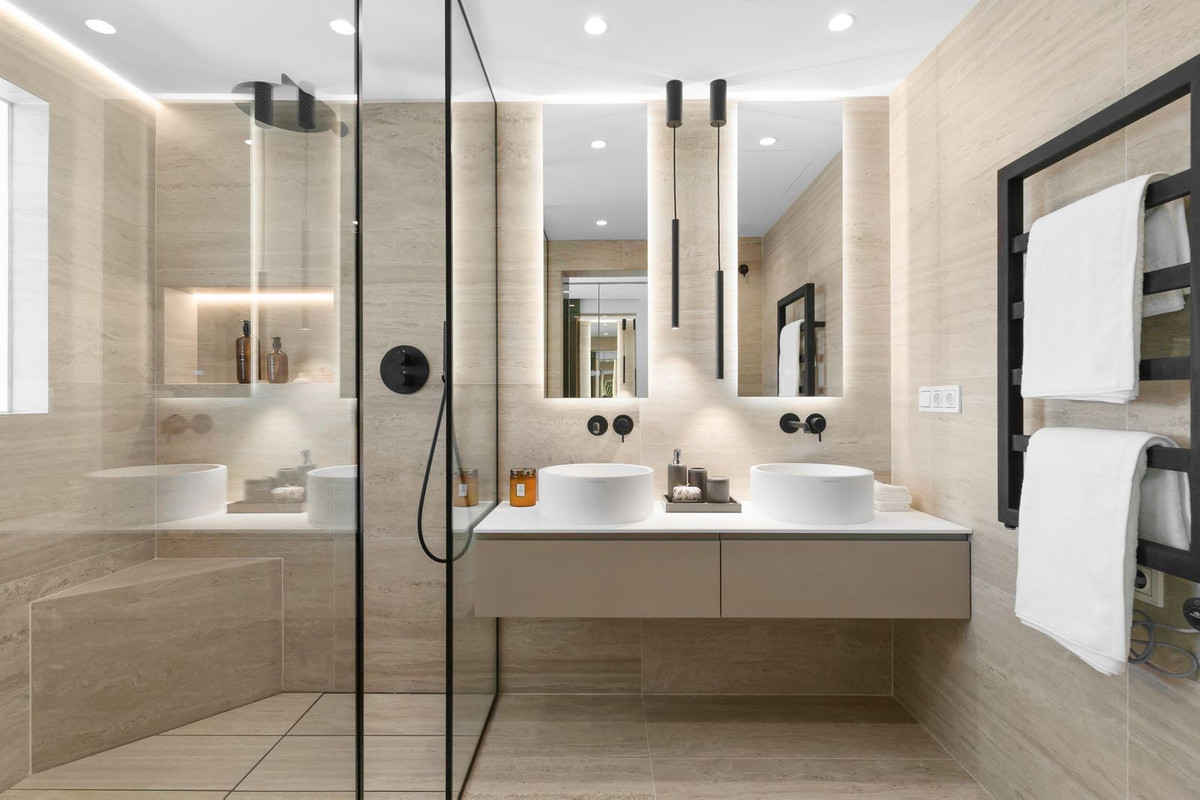 Up on the first floor there are 3 three en-suite double bedrooms, each which their own unique and custom design. All bathrooms have been fitted out to a very high standard and also have under floor heating.
