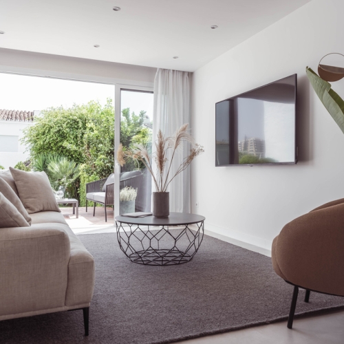 A four-bedroom town house located in Nueva Andalucía, Marbella. A fantastic community with quite streets, ample parking and 24-hour security. Just minutes from the beach front al fresco life style of Puerto Banus.
