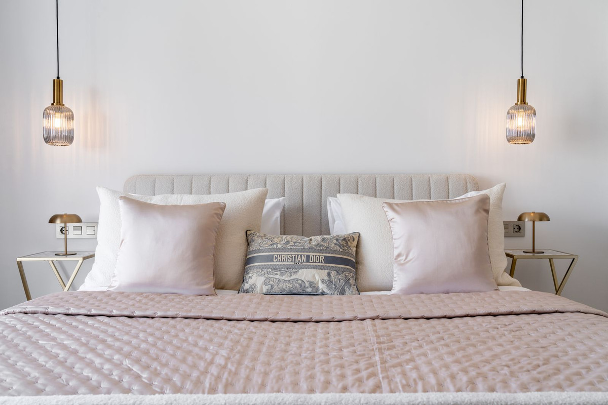 Inside, the residence has been completely reimagined with a bespoke interior design and full furniture installation, marrying contemporary sophistication with a sense of warmth. Commissioned artwork and handmade curtains lend individuality and refinement, while new fitted carpentry provides discreet, seamless storage. The main reception space is anchored by a feature-lit television wall with integrated surround sound, a striking focal point that perfectly balances modern design with everyday comfort.