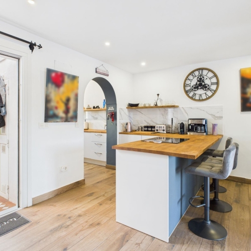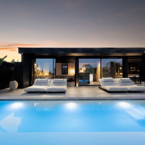 The villa sits on a generous plot of almost 1,000 m², surrounded by landscaped gardens that ensure privacy, tranquility, and a true sense of escape. A large private swimming pool takes center stage, while an automated gate opens to the driveway with both open and covered parking.