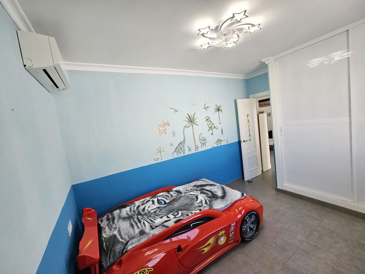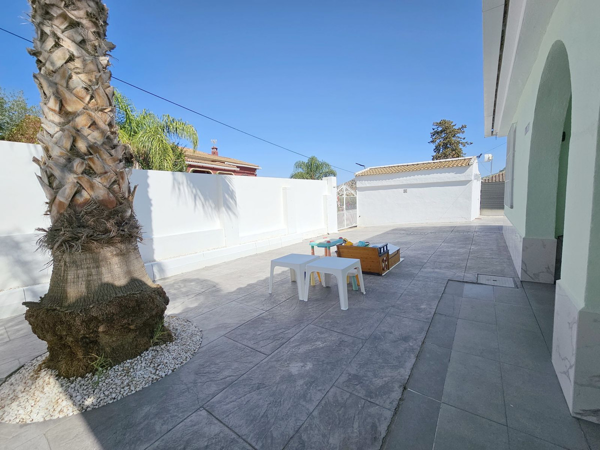 The villa is arranged on one level and comprises two bedrooms and two bathrooms. Inside, you'll find a bright, modern interior with an open-plan layout and a brand-new fitted kitchen. Natural light fills the home, creating a spacious and airy feel throughout. The property can be accessed from both the front and the rear. Entering through the main door, you step into a generous lounge and dining area leading to the kitchen. Off the lounge is the first double bedroom, currently used as a child's room, complete with fitted wardrobes and ample space. A short hallway, with additional storage wardrobes, connects to the master bedroom—a large, comfortable space with fitted wardrobes and a stylish en-suite bathroom featuring a walk-in shower. Adjacent to the master is the family bathroom, fitted with both bath and shower. Both bathrooms have been recently renovated to a very high standard.