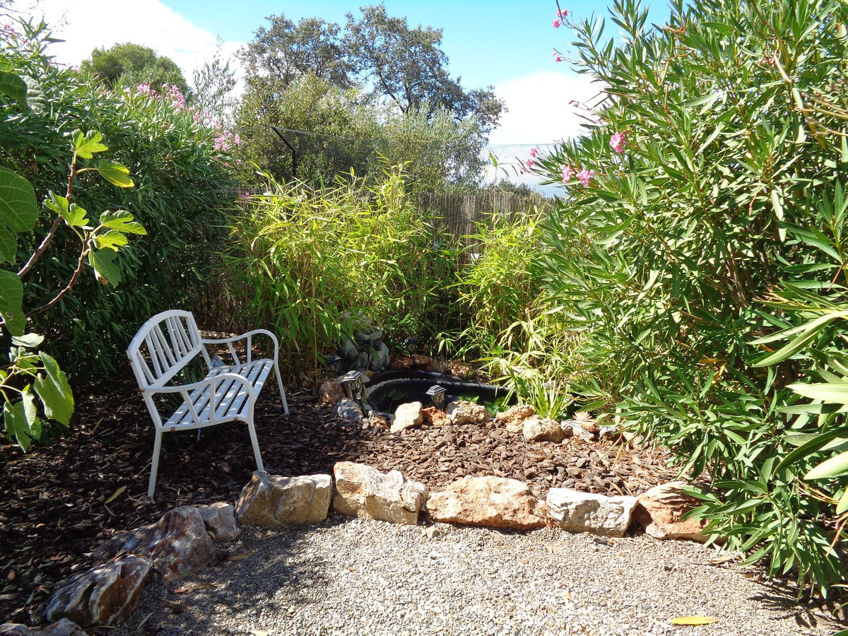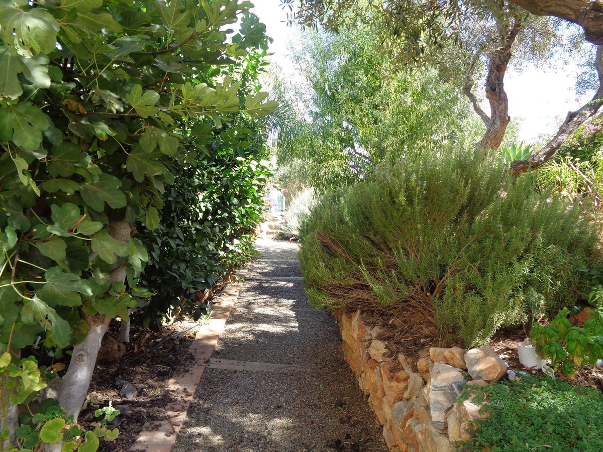 From the swimming pool area the garden footpath meanders through the grounds, past the herbs, flowers and fig trees leading to a grassed area with olive trees .