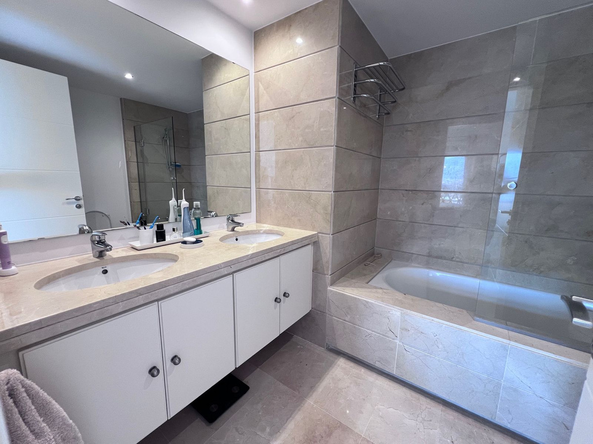 We are delighted to be able to offer for sale this immaculate 2-bedroom 2.5-bathroom townhouse located in the ever popular "Monte Alto" La Cala Golf. With its immaculate mature gardens, 2 communual swimming pools & tropical walkways. This townhouse offers 2 large double bedrooms, both with ensuite bathrooms & terraces, the master bedroom has fabulous mountain views & sea in the distance. Ample fitted wardrobes to both bedrooms with additional wardrobe storage on the landing. On the ground floor we have a fully fitted kitchen including an integrated fridge freezer, washing machine & a dishwasher, guest WC, good size dining area leading to the lounge area featuring a functioning fan assisted log burner for winter use, this then leads out on the terrace & garden area. The house offers direct internal access down to a private garage large enough to take 2 standard sized cars plus additional storage. The garage has its own private electric vented door. Further features include cream polished marble floors throughout, recently renewed ducted air conditioning system, hot & cold, Electric window shutters throughout, Double glazing, fibre optic internet. This house would make a perfect holiday or permanent home being just a short drive to La Cala De Mijas. La Cala Resort offers 3 championship golf courses, Hotel & Spa, Padel courts & various dining establishments. To be sold un-furnished.