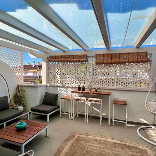 17th Floor with Panoramic Views.???? Live from the heights in this bright penthouse studio located on the 17th floor, with a private terrace and spectacular views of the sea and the city.---Just 400m walking distance from Finestrat Beach, in a quiet area yet perfectly connected:????️ La Marina Shopping Center and supermarkets nearby???? Bus stop just a few meters away????️ Restaurants and all kinds of services around---Main features:1 full bathroom ????Fully equipped kitchen ????Bright open-plan space ????Private terrace with panoramic views ????Elevator ????Underground parking ????Community swimming pool ????♀️???? A perfect location that combines the tranquility of La Cala de Finestrat with the proximity of Benidorm, beaches, leisure, and shops. Ideal both for living all year round or as an investment in one of the most sought-after areas of the Costa Blanca.???? A charming penthouse with unique views that will make you fall in love every day.