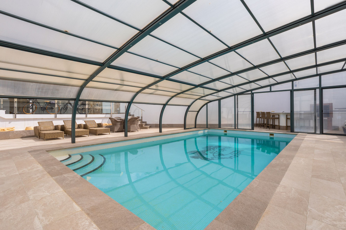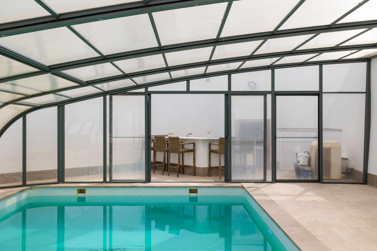 In addition, there is a spacious plot with a heated pool and a large terrace with space for outdoor furniture.