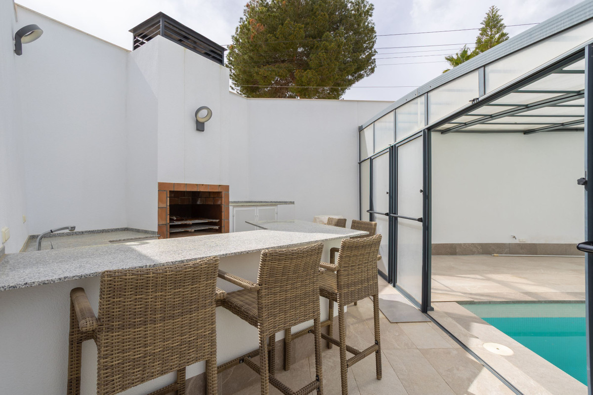 Newly renovated villa with heated pool and large terrace A warm welcome to the popular Urbanización Blue Lagoon located just outside Villamartin on the southern Costa Blanca. This newly renovated villa consists of three bedrooms, two bathrooms, living room and kitchen. The villa has a nice flow of light throughout, lightly furnished spaces and an inviting feel.