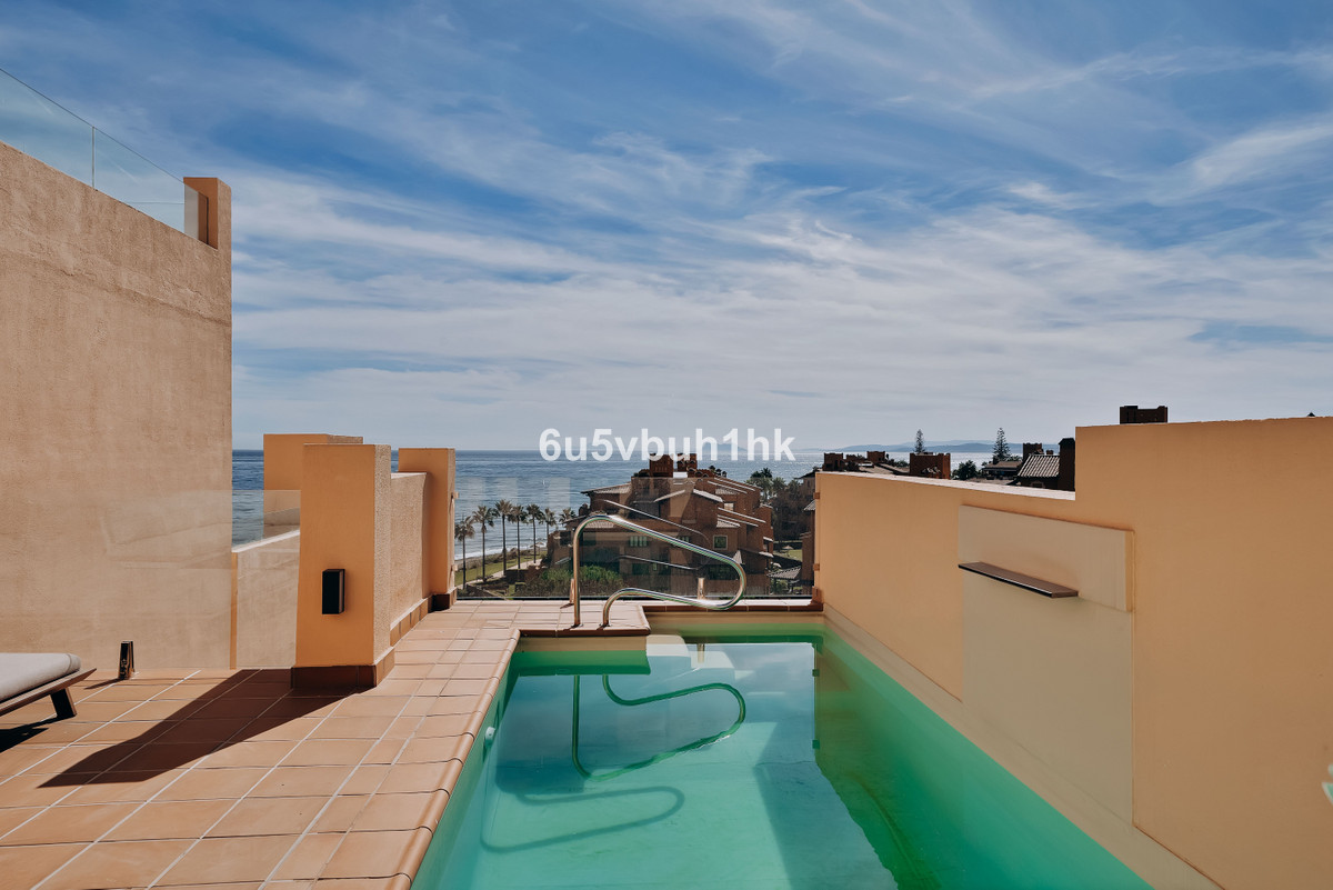 Discover this spectacular 3-bedroom, 3-bathroom duplex penthouse, located in the prestigious Bahía de la Plata development, right on the beachfront in Estepona. A truly unique property that combines luxury, comfort, and an unbeatable setting with breathtaking views of the Mediterranean Sea and the Rock of Gibraltar.