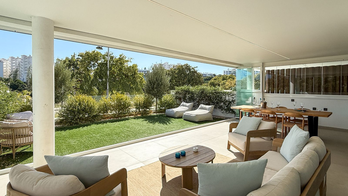 But more than that, it is the ideal place for outdoor living as there is also an oversized covered terrace that has been recently upgraded with glass curtains for maximum use of the terrace all year round and a very nice mediterranean garden with very low maintenance. The terrace has water and electricity pre-installation for an outdoor kitchen. The garden has sprinkler installation for automatic watering of the plants as wel as pre-installation for a jacuzzi.