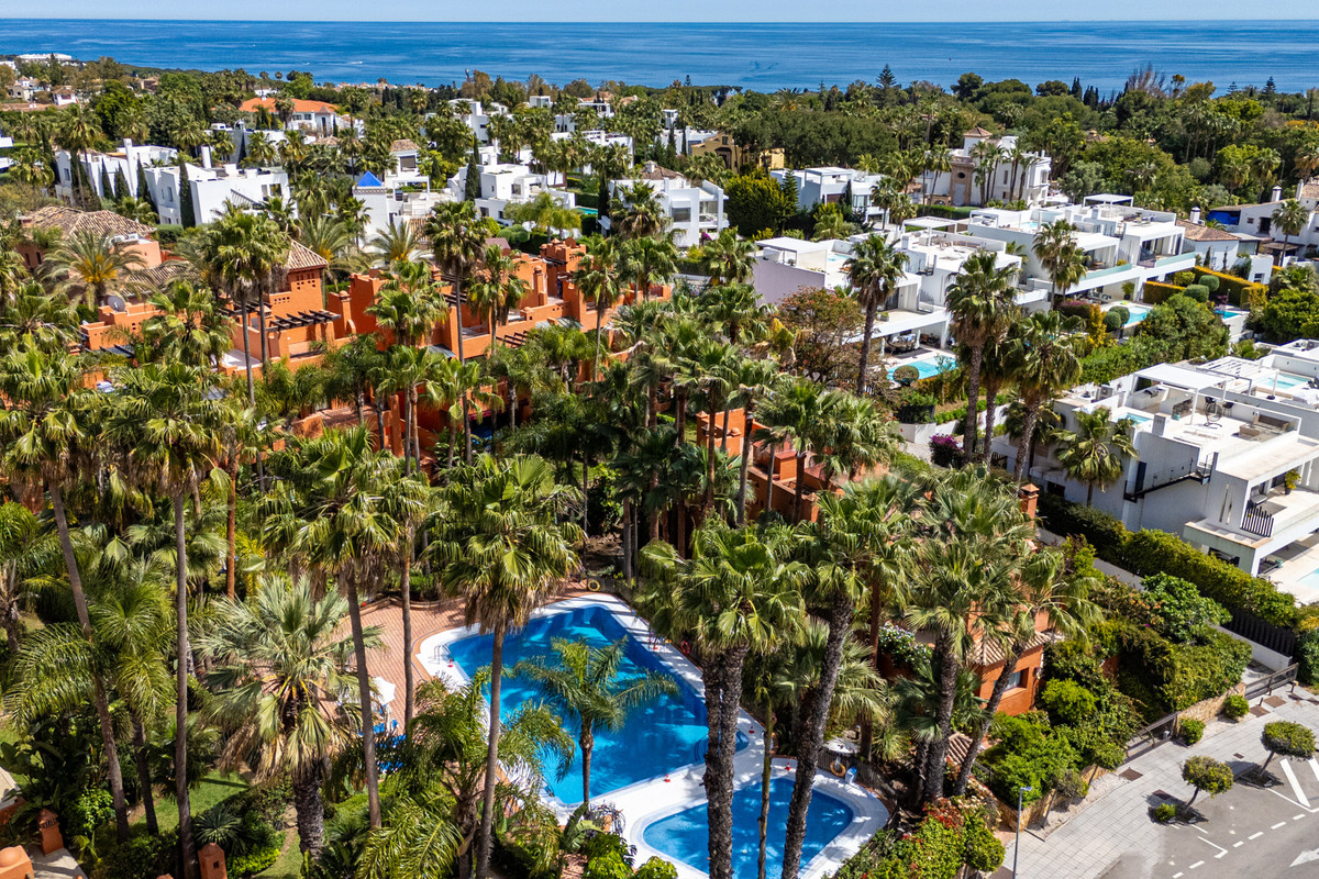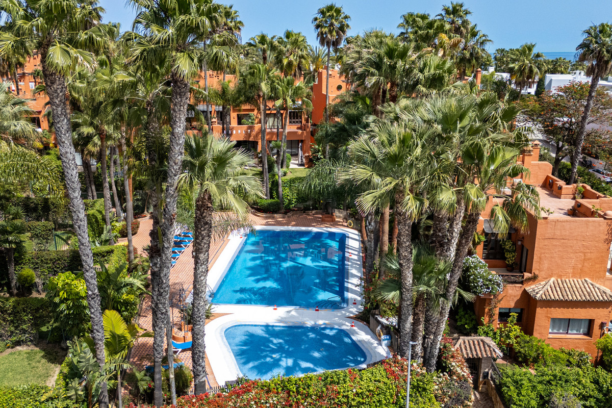 Townhouse Oasis is a five-bedroom luxury home in one of Marbella's most prestigious gated communities on the Golden Mile. Surrounded by tropical gardens, this townhouse offers privacy, comfort, and Mediterranean charm. With multiple terraces, a private garden, and a rooftop solarium, it combines outdoor living with elegant interior spaces, making it ideal for families or buyers looking for a secure retreat close to the beach and amenities.