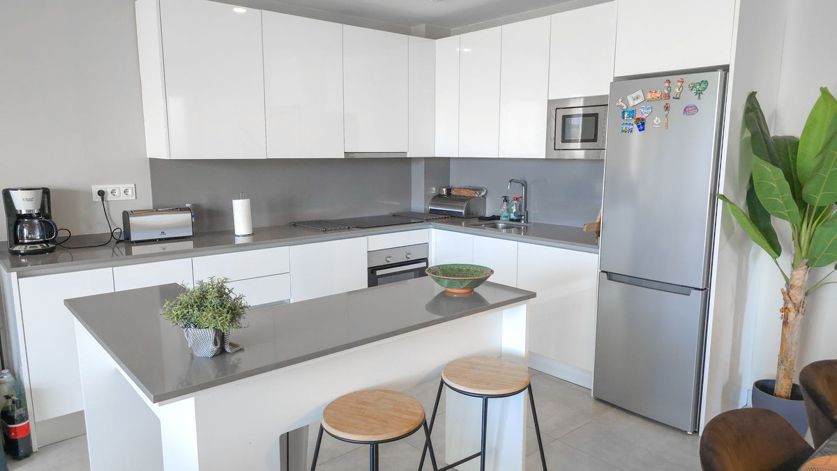 Located in an elevated position above La Cala de Mijas, this penthouse offers sweeping views over the town, surrounding landscapes, and the Mediterranean. The interior layout is designed with open-plan living, generous windows that flood the rooms with natural light, and seamless access to the large terraces. The spacious kitchen and dining area connect effortlessly with the lounge, creating an ideal space for both everyday life and entertaining.