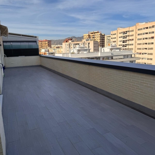The spacious living-dining room, filled with natural light, opens onto a magnificent 30 m² terrace designed for enjoyment: whether for breakfast in the sun, dinner at sunset or simply relaxing. From this terrace, you can access a 200 m² private solarium, a unique space with breathtaking panoramic views of the city of Malaga, ideal for creating a chill-out area, installing a small swimming pool or urban garden.