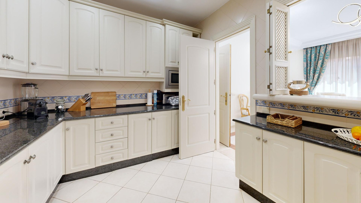 This modern single storey property, located in the urbanisationJardines de Don Carlos, has three bedrooms and two bathrooms, and is ideal for those looking for comfort and an excellent location. It is located just a few metres from the beach in Elviria, which makes a perfect choice for enjoying the sea and the sun.Upon entering, we are greeted by a large glazed terrace with orientation East, from which we can appreciate the views to the gardens and to one of the communal swimming pools, an ideal space to enjoy all year round. This terrace connects with a bright living room that leads to a second terrace, where the sun shines all morning.The property has three spacious bedrooms with fitted wardrobes.The two bathrooms, one of them en-suite, have been recently refurbished to include shower trays. The kitchen is spacious and has top of the range appliances and a separate utility room. The property is equipped with air conditioning and central heating. The floors are marble and the windows have double Climalit glazing and automatic shutters.An ample storage room and a garage space with electric charger are included in, which is an added advantage for owners ofelectric vehicles. This urbanisation offers three swimming pools, gymnasium and sauna, making an ideal place to enjoy your leisure time.The location is unbeatable as it is close to all amenities, such as restaurants, supermarkets, pharmacies, and has easy access to the motorway. Marbella centre is only 10 minutes away by car.Do not hesitate to contact us at for more information or to arrange a viewing. This property is an opportunity you will not want to miss!The Abridged Information Document is at your disposal. Costs: Tax (ITP or IVA+AJD) + notary and registry fees.MPR