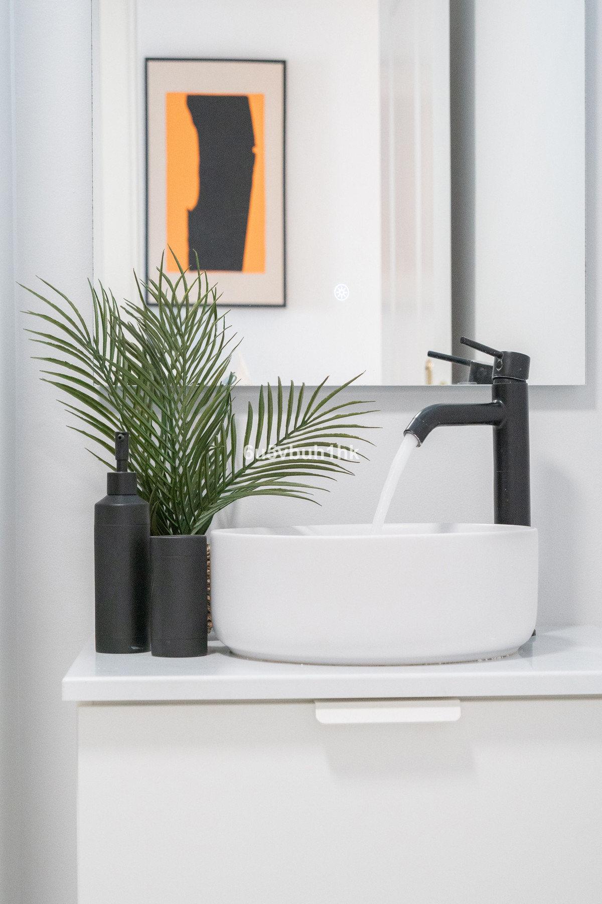 Upstairs, there are three generous bedrooms and two bathrooms. The main bedroom features an elegant en-suite, morning sun from its east-facing position, and views of the sea. Every bedroom is thoughtfully furnished and tastefully decorated, with study desks, soft lighting, hand-stitched cushions, and calming neutral tones.